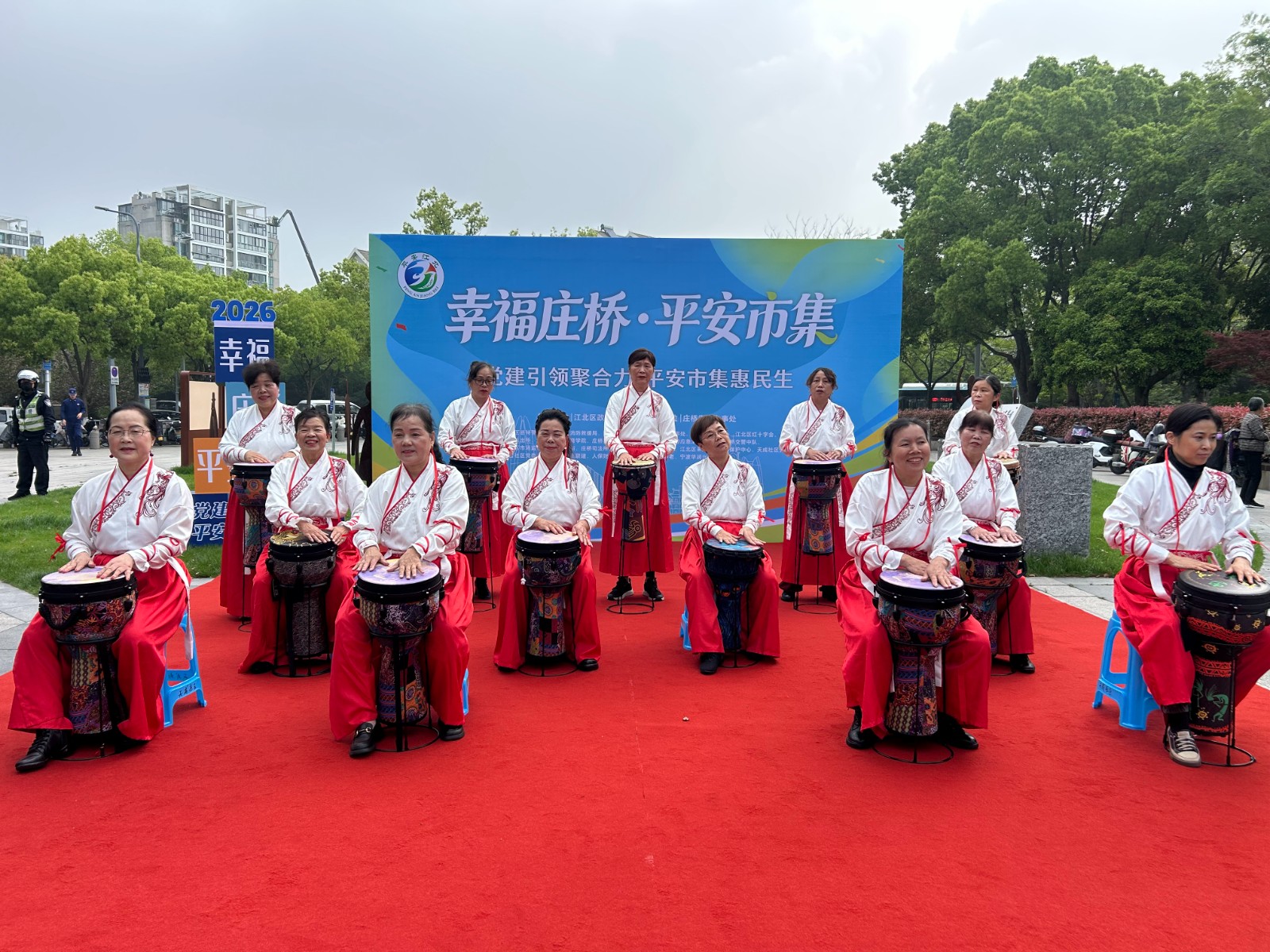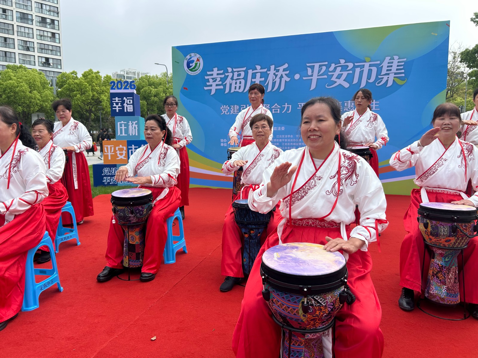 4月15日上午,庄桥街道“幸福庄桥,平安市集”主题活动火热拉开帷幕,现场人头攒动、暖意满满,处处洋溢着邻里相聚的欢乐氛围。庄桥街道老年学校天成社区非洲鼓初级班的全体学员,在郑老师的带领下盛装登台,以一曲铿锵欢快的非洲鼓演奏,为这场烟火十足的市集活动,奏响了别样的文艺乐章,成为现场一道亮眼的风景线。