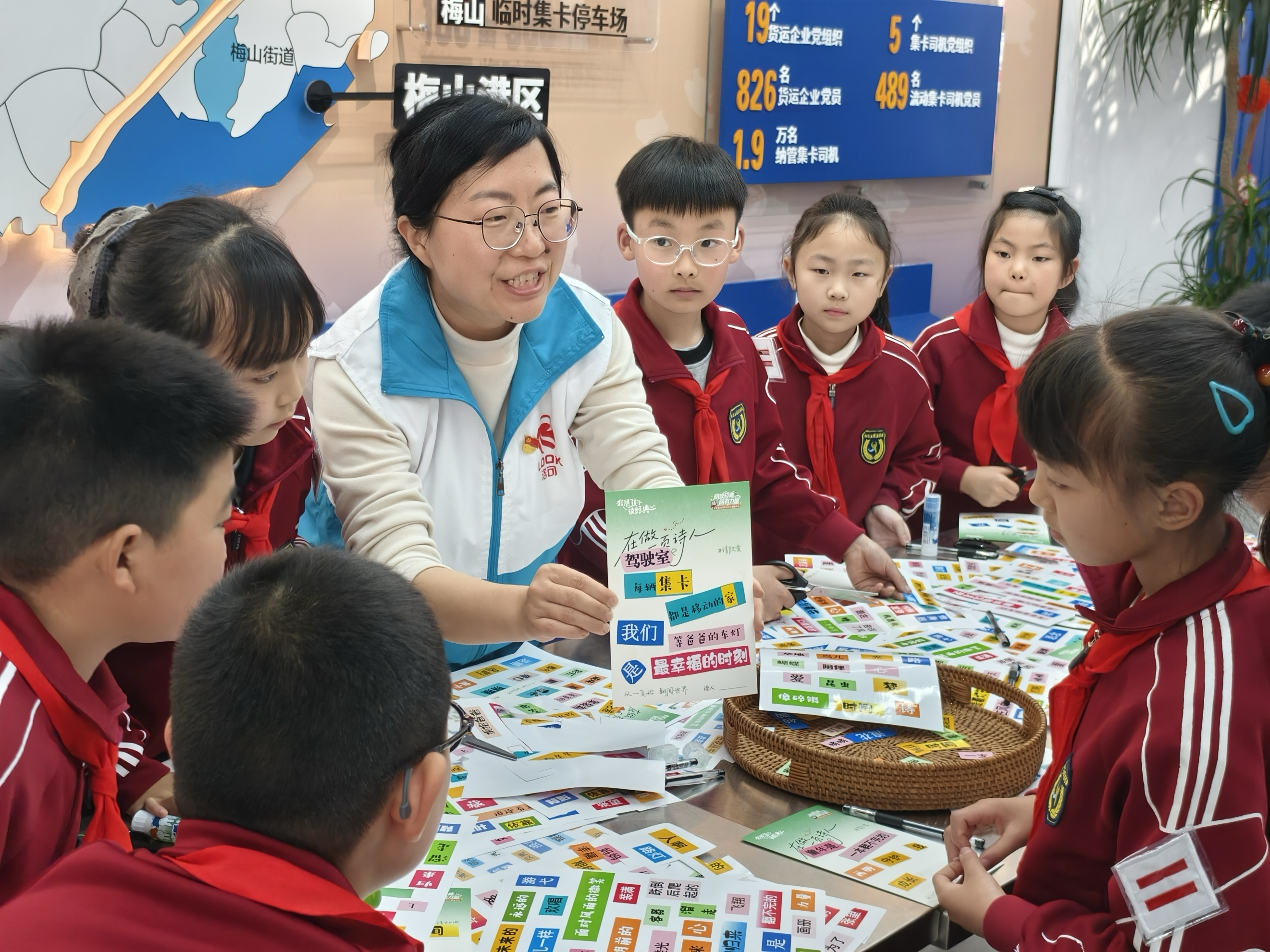 为关爱集卡司机子女成长 ,弥补司机们因奔波劳碌缺少陪伴子女的遗憾,丰富集卡司机子女的课余文化生活,4月19日北仑社区教育学院 、霞浦物流工业社区组织开展了集卡司机子女诗词阅读及诗词贴贴乐活动,十余位集卡司机子女齐聚一堂,在朗朗诗词声、诗词贴贴乐中感受传统文化魅力,度过一段温馨而充实的时光。