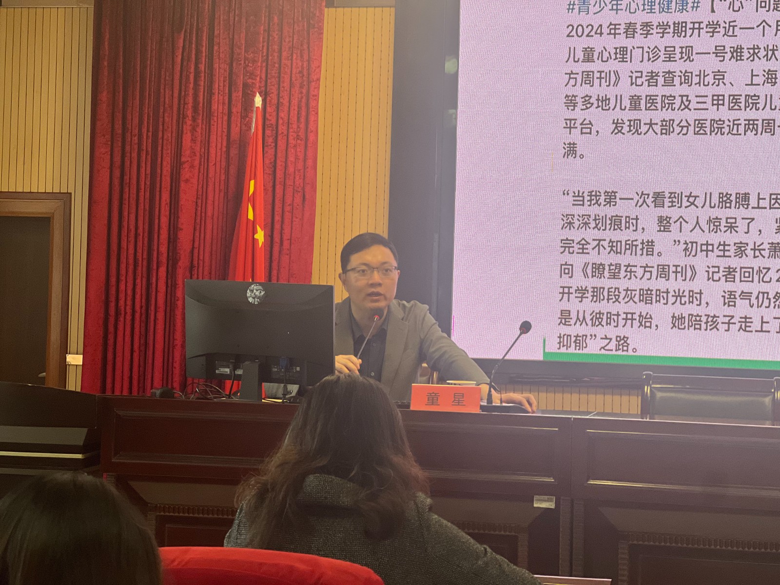 讲座特邀南京师范大学博士后、副教授童星主讲。童老师围绕当前青少年心理健康高发态势,结合典型案例,系统讲解高敏感儿童特征、个体与环境影响因素,深入解读抑郁症、双相情感障碍的核心表现与早期信号,清晰梳理自杀风险的五大发展阶段与语言、行为、人际、网络四类预警信号。针对家庭干预难点,童老师重点传授倾听沟通、情绪陪伴、节律重建、温和干预等实操方法,强调早识别、早介入、早守护的重要性,内容兼具理论高度与实践指导性。