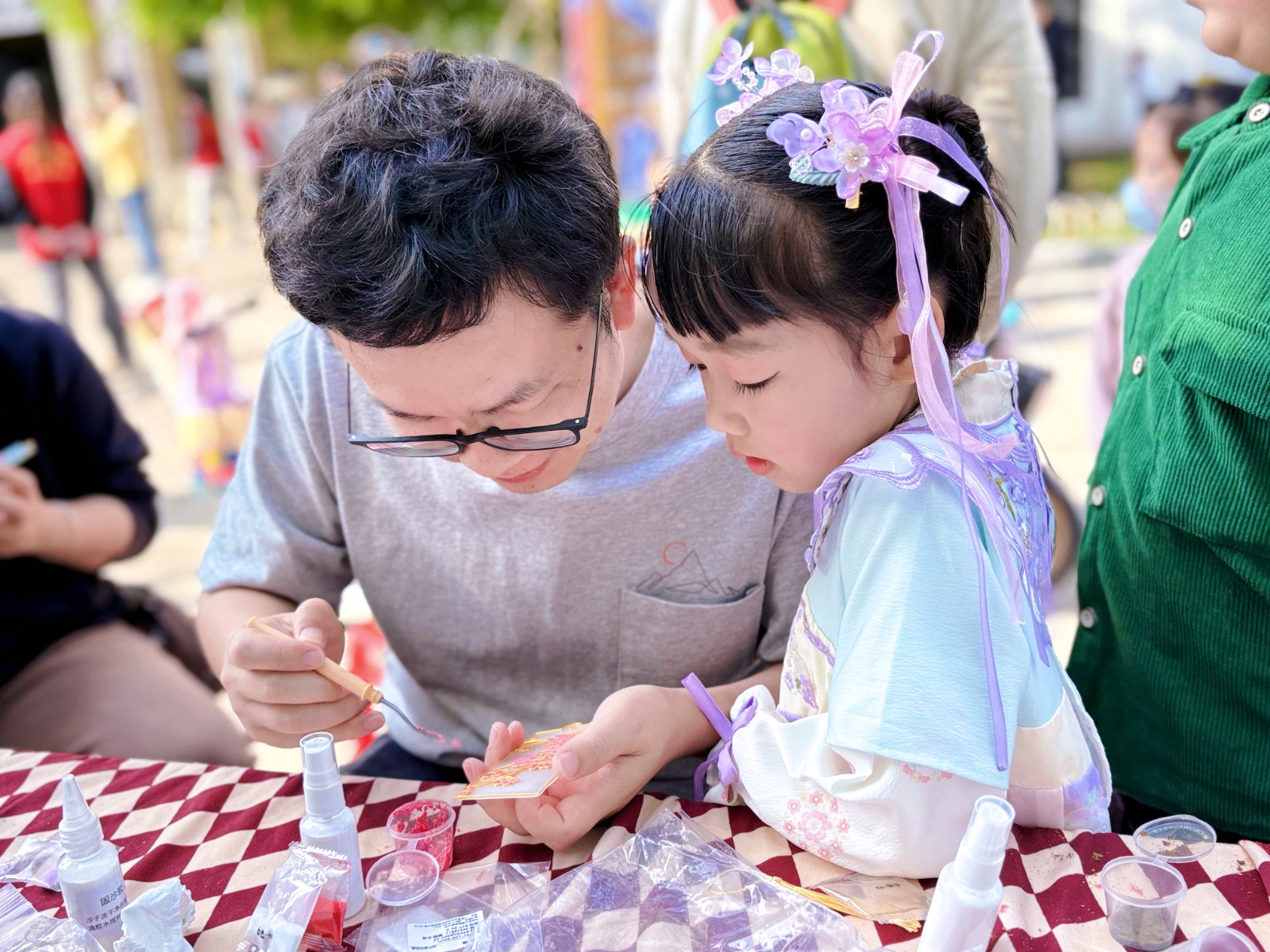 经过一个多小时的精心制作,一枚枚色彩斑斓的珐琅书签陆续诞生——红梅映雪、幽兰吐芳、劲竹挺拔、秋菊抱香、清莲濯涟……每一枚都凝聚着亲子间的默契与巧思。家长王女士与女儿合作完成了一枚莲花书签,她感慨道:“平时工作忙,难得和孩子一起静下心来合作。这次活动还让孩子懂得了莲花‘出淤泥而不染’的品格,以后读书时看到这枚书签,就能想起今天的收获。”