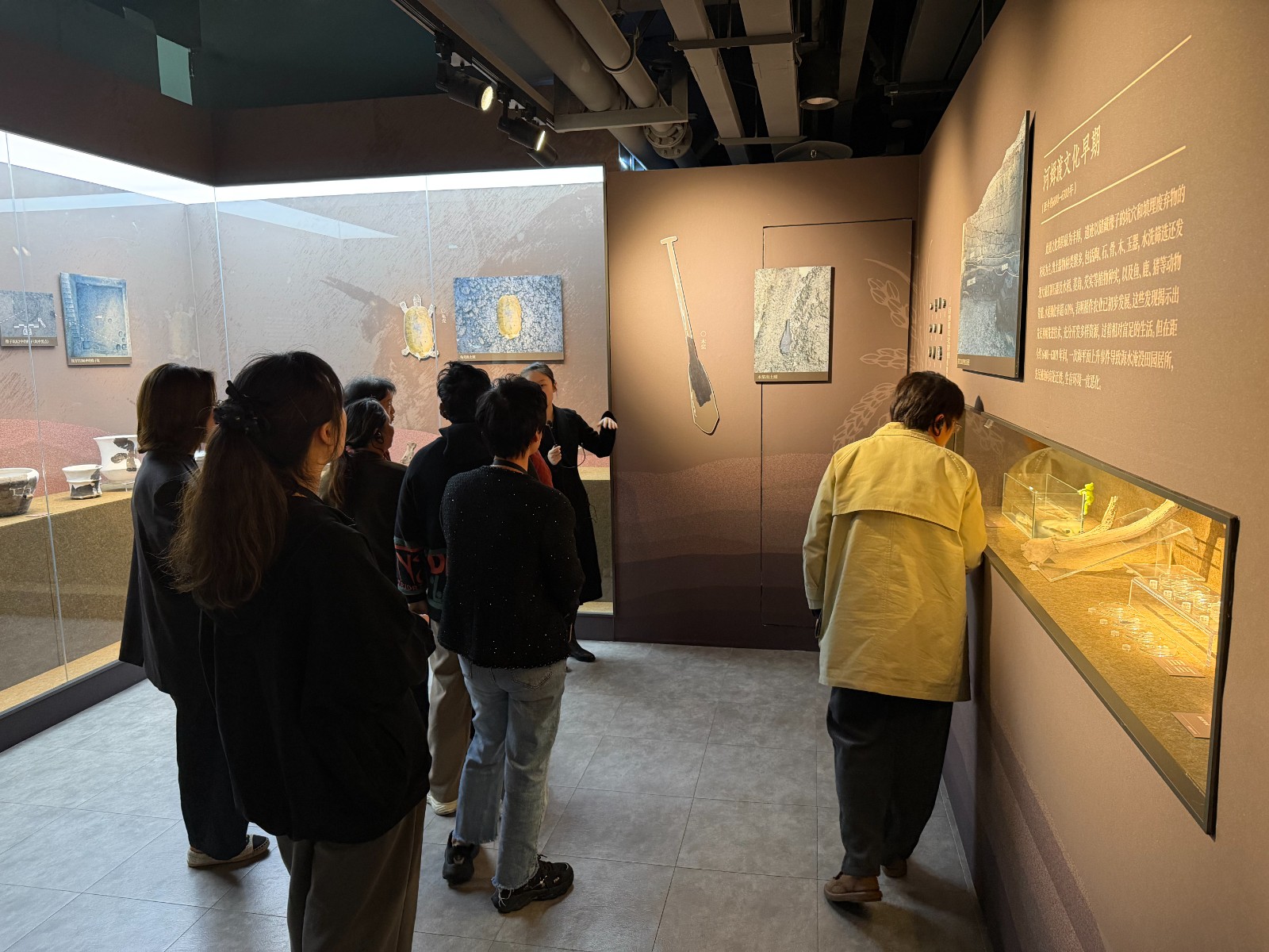 为推动历史文化学习与实地体验相融合,今日,中心村组织辖区妇女群众代表前往宁波帮博物馆汶溪遗址展厅“亘古的鸣响”参观学习,在行走中阅读历史,在遗址前感悟文明。汶溪遗址作为区域内重要的史前文化遗存,见证了先民生活的痕迹与早期文明的曙光。活动中,妇女群众在讲解员的引导下,沿着遗址展示区缓步前行,认真聆听关于汶溪遗址的发现历程、文化层堆积、出土器物及其历史价值的详细介绍。一件件陶器残片、一处处地层剖面,无声诉说着数千年前先民的生产与生活。参观过程中,妇女们时而驻足凝视,时而低声交流,不少人表示,平时忙于家庭与田间劳作,很少有机会如此系统地了解家乡深厚的历史文化底蕴。“以前只知道在这片土地种庄稼,没想到脚下还藏着这么悠久的故事。”一位妇女感慨道。通过“行走的阅读”,她们不再是历史的旁观者,而是文化的亲历者与传承者。