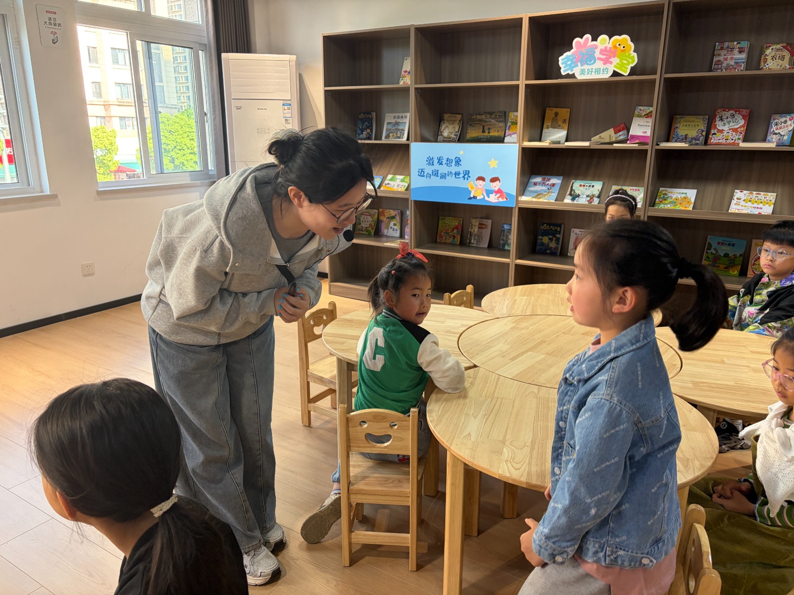随后,绘本馆老师带来绘本故事《森林里的陌生来客》,用温柔生动的语气,讲述了人类闯入森林、破坏动物家园,最终与动物和解共生的故事。老师结合绘本浓墨重彩的插画,引导孩子们换位思考,体会动物失去家园的痛苦,孩子们听得聚精会神,纷纷举手分享自己的感受,热烈讨论日常节约用电、垃圾分类、爱护草木等环保小方法,童真的话语里满是对地球家园的珍视。