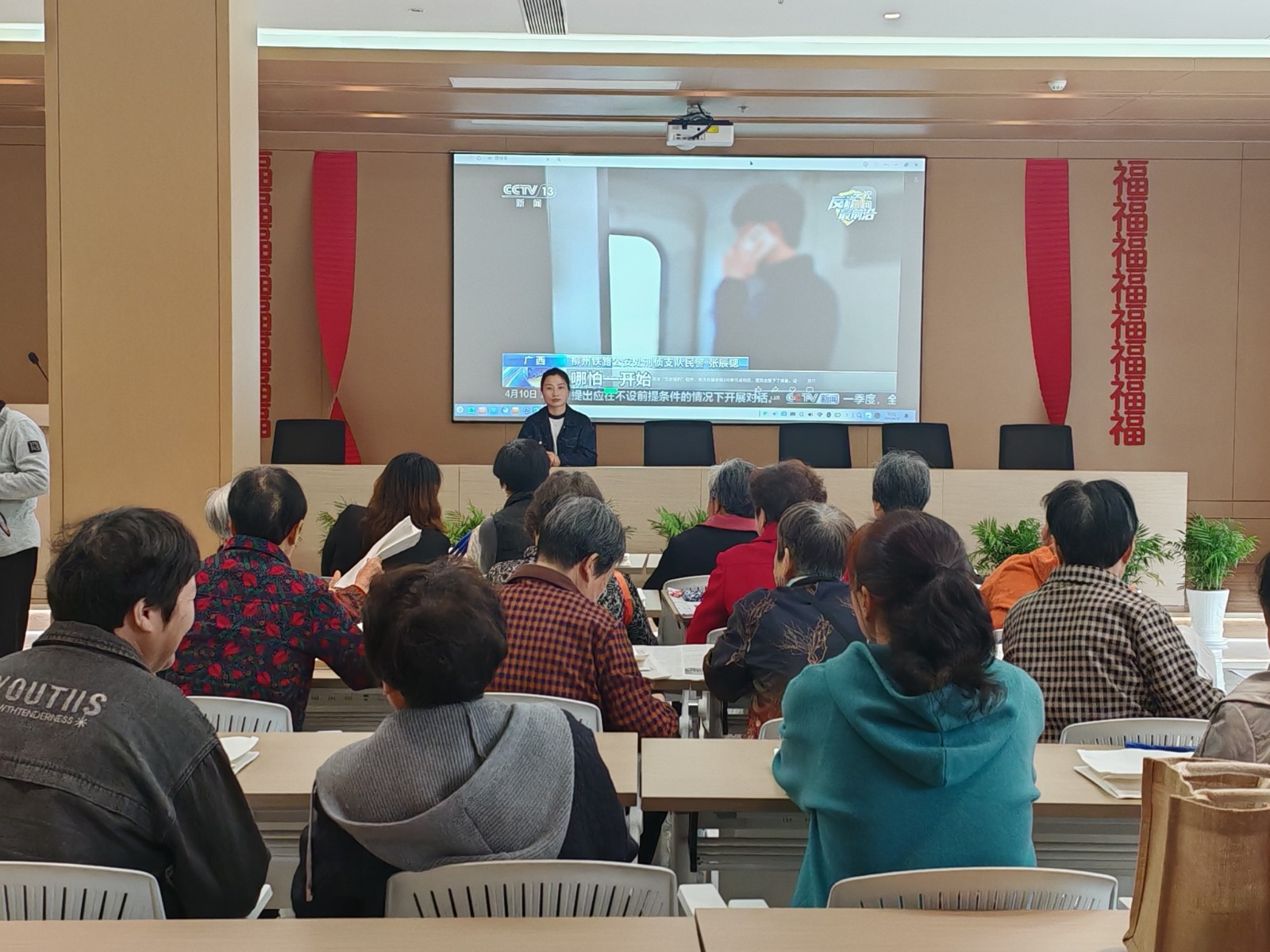 “陌生链接别乱点,客服退款要核实,刷单返利都是骗……”427,在由青墩社区党群服务中心联合青墩社区新时代文明实践站举办的一场主题活动开始前,一段时长3分钟左右的反诈短视频在投影上进行播放,生动诙谐的剧情吸引了在场居民的注意。