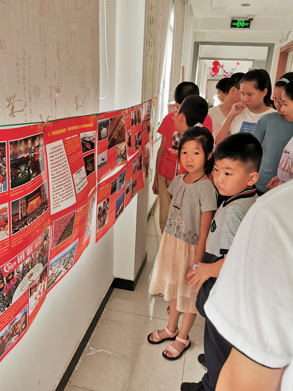 在社区严巧娜书记的带领下,同学们边听边驻足观望,回顾了从新中国成立、社会主义制度建立,到全面建设小康社会,再到以习近平同志为核心的党中央开创中国特色社会主义新局面,在党的领导下,祖国母亲在70年辉煌历程中实现了国家富强、民族振兴、人民幸福的伟大征程!经济、整治、文化各个领域取得的累累硕果,指引着当下新时代的青少年学生们“不忘初心,牢记使命”,端正志向,坚定信念,早日成长成为一名国之栋梁,为社会主义现代化建设献计献策,奋斗终身!