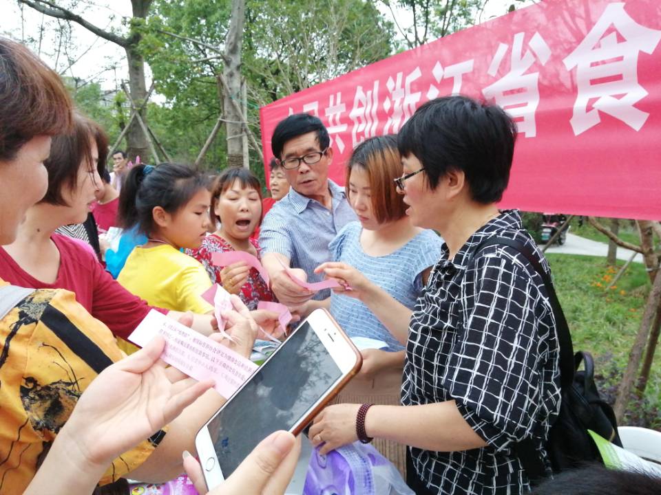 为提高辖区居民食品安全意识,推动食品安全示范区创建,近日,杜鹃社区组织辖区志愿者开展了一系列浙江省食品安全区创建宣传活动,提升居民对食品安全创建工作的知晓率及支持率,营造良好的城市共建氛围。