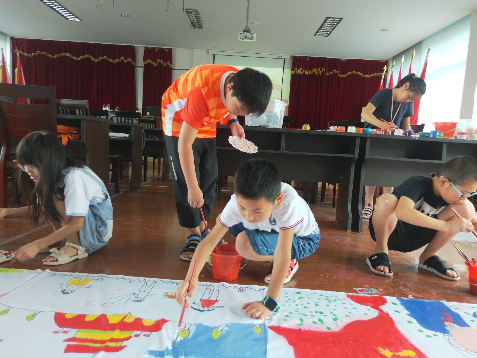 今年是建国70周年,为传承红色基因和增强青少年对祖国的认同感、民族的自豪感。7月19日上午,北仑区春晓成校昆亭假日学校举办了“献礼建国70周年,争做新时代好少年”绘画活动,在一块白色长布上绘画,假日学校里的全体学生参加了本次活动。