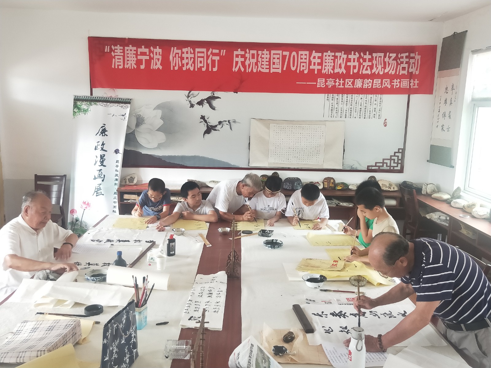 7月22日,北仑区春晓成校昆亭假日学校邀请了辖区书法爱好者,带领假日学校的学生们开展了一堂别开生面的廉政书法活动。