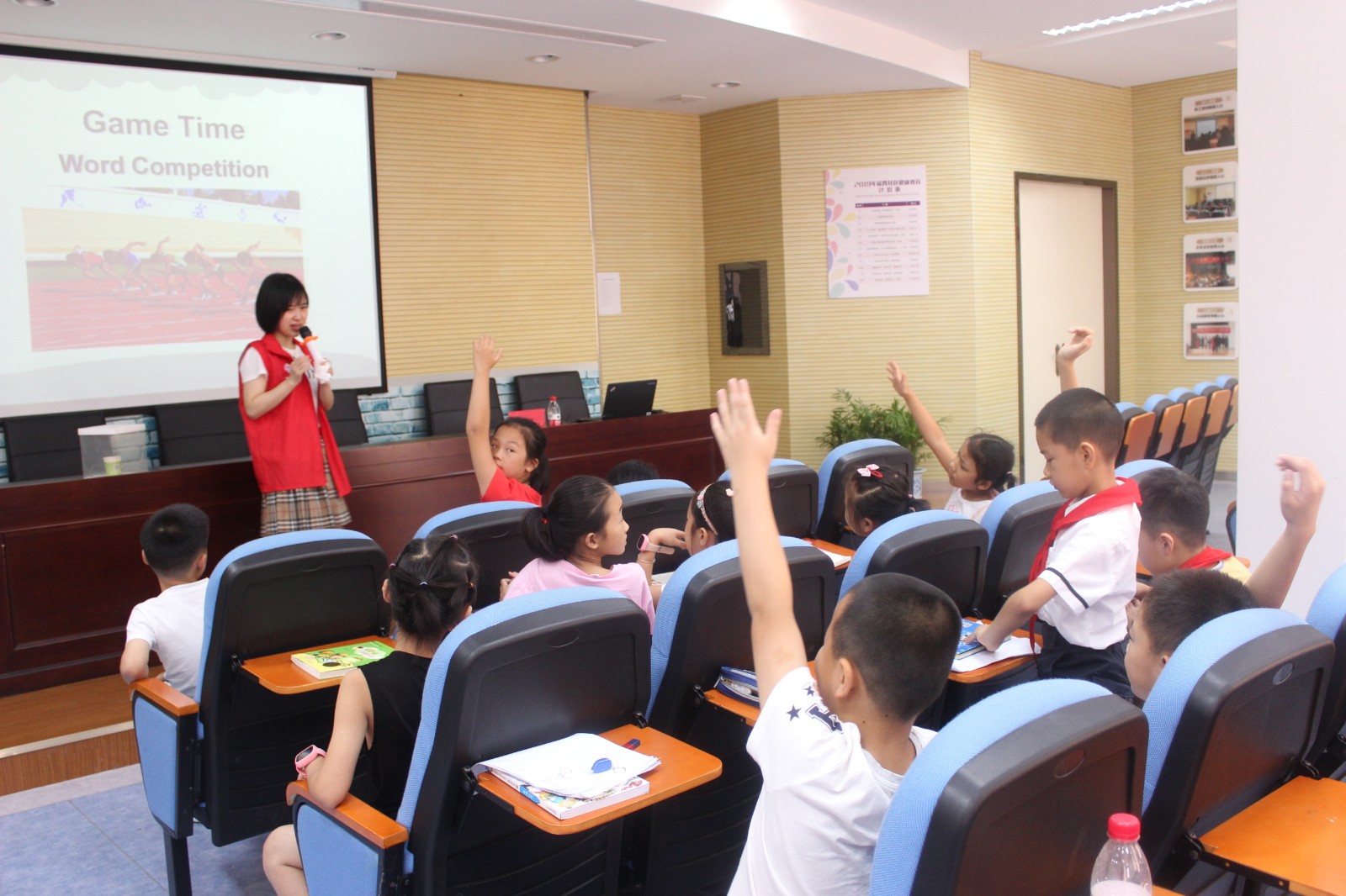 7月22日上午,凌霄社区假日学校邀请到辖区公益伙伴,来自伴你培训的张璐老师,同时也是一名毕业于诺丁汉大学的海外留学生,她用标准的的英语带领孩子们领略英语语言的魅力。