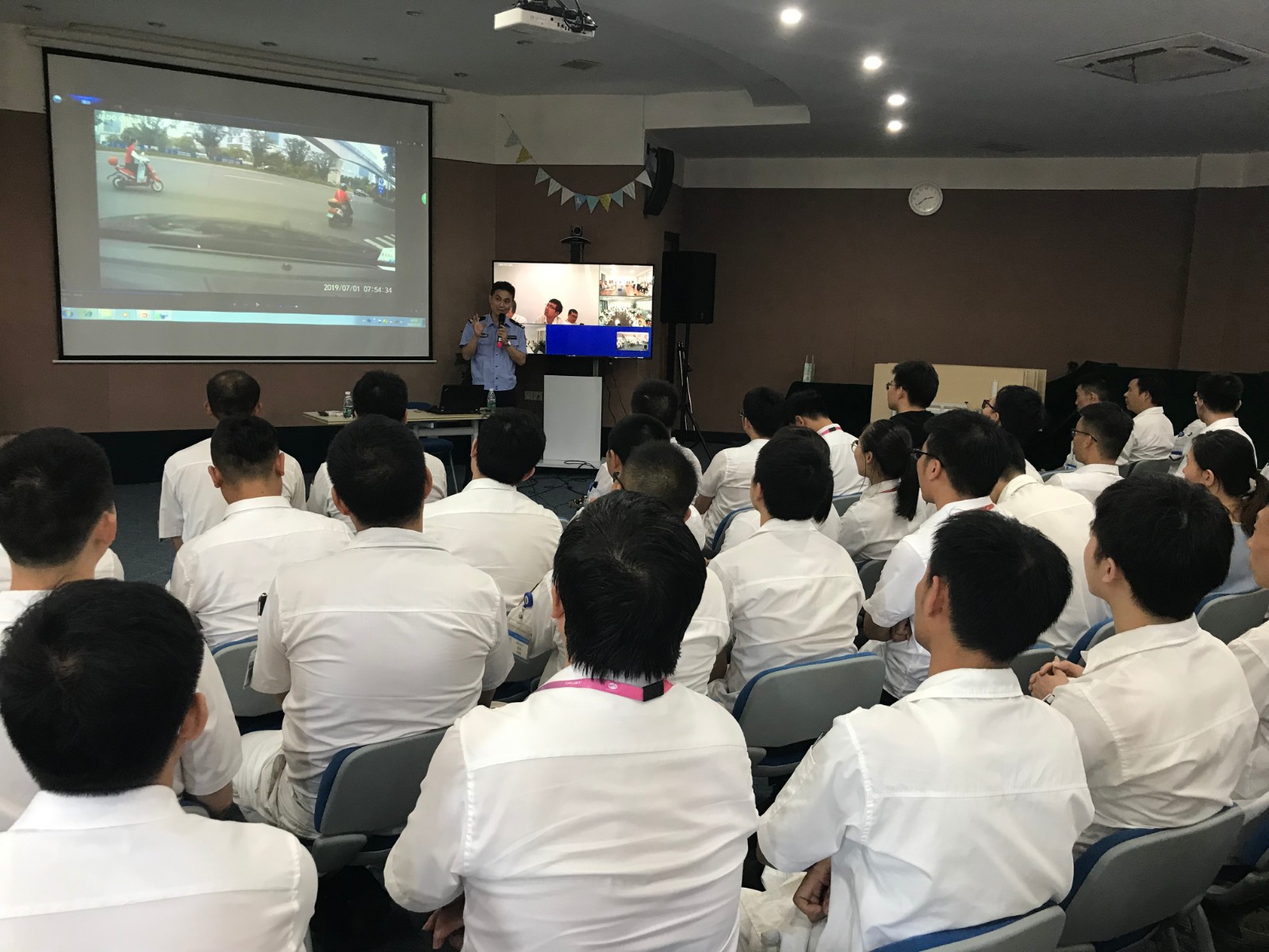 随着北仑交通安全新规的出台实施,为了减少交通安全事故多发,进一步增强园区企业职工交通安全法规意识和文明出行意识,大港社区特邀请了区交警大队章红勇警官将交通安全知识讲座走进敏实集团,现场视频还切换到了各个分厂,进行了现场视频培训学习,共有近500名职工参与学习。