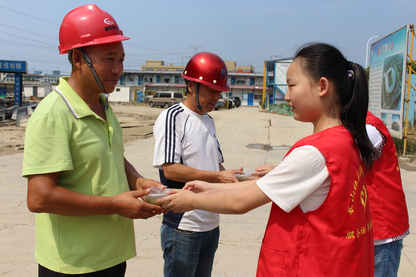 在这汗如雨下的三伏天,建筑工地上仍旧一片繁忙,建筑工人们头顶烈日,坚守岗位。7月25日下午,长山社区开展建筑工地“送清凉”活动,为奋战在一线的建筑工人送去绿豆汤,希望他们可以在繁忙之余,注意自身的防暑降温。
