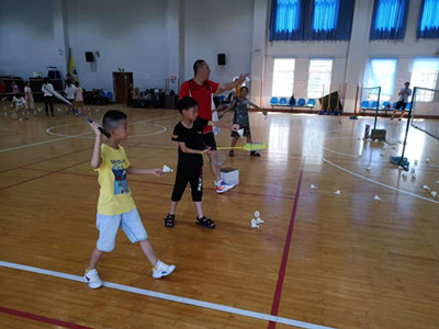 来到羽毛球训练场,老师根据小朋友的身高和年纪段进行分组训练,首先老师为孩子们示范了正确的握球拍姿势以及各种接球的手势等。“小候鸟”们专心听讲,并不时用手中的球拍比划着。到了自己动手实践阶段,同学们都兴高采烈地玩,不时老师会指导纠正手势错误,同学们玩的热火朝天。