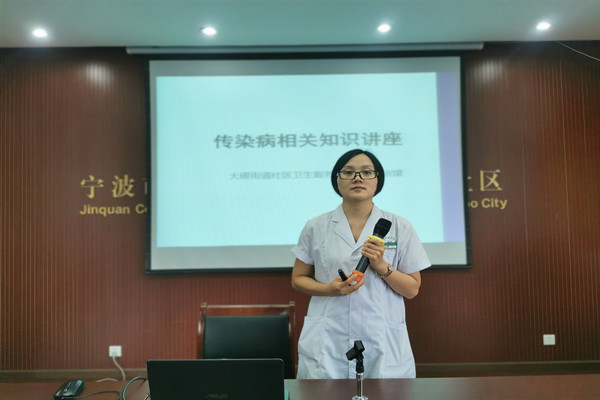 为有效预防夏季传染病,7月16日上午金泉社区邀请大碶社区卫生服务中心的医生给同学们开展预防传染病知识讲座,为学生们普及传染病预防知识。