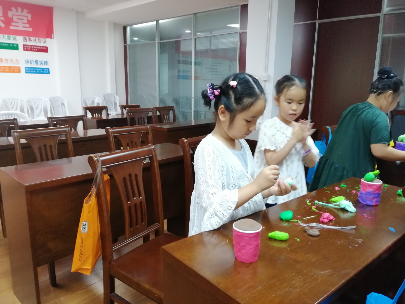 近日,金邑社区组织青少年在社区文化活动中心开展彩泥手工培训活动。