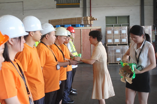 8月1日上午,物流园区管委会常务副主任徐群、物流园区总工会主席丁慈英深入企业一线,为高温下坚守的劳动者们“送清凉”。亲切慰问坚持在高温生产一线的职工,并送上清凉饮品和防暑药品。在企业生产车间和流水线旁,徐群认真听取企业负责人对高温期间企业生产情况和职工工作状况的介绍,仔细询问企业的安全生产、防暑降温措施等情况,督促企业做好劳动组织和管理,适当调整夏季高温作业劳动和休息制度,鼓励企业积极采取风降温措施,努力改善职工生产生活环境,并关照职工们在搞好生产的同时务必要注意安全、防止高温中暑、保重身体健康。