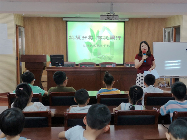 7月29日上午,百灵社区假日学校组织学生开展了“垃圾分类  你我同行”知识讲座,共30余位学生参加了此次活动。