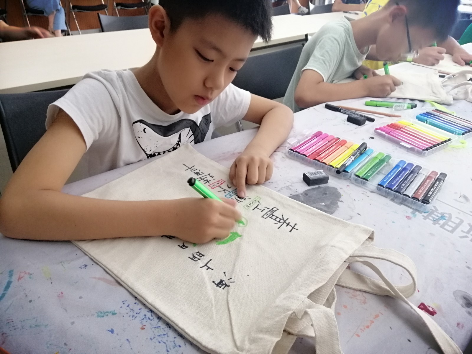 参观完各个展厅,小朋友们在博物馆老师的引导下来到了创作室,进行了手工环保袋创作,并在垃圾分类知识抢答中结束了本次暑期社会实践。