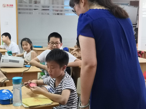 还没上课,夏老师就给每位同学发了一张苹果形状的小纸片,大家纷纷猜测需要用它做什么,老师却卖了个关子,说要在课上揭晓答案。课程伊始,夏老师并未直接进入课堂,而是先带着大家做了一个热身游戏,首先就调动了大家的积极性。随后,老师让孩子们在苹果上用词语写自己的优点或缺点或别人眼中的我,并在全班分享自己写下的词语。听完所有人的发言后,夏老师进入正题,点明今天要上的主题是“我很特别”,每个人都是独一无二的,都有自己的缺点与优点,都要接受自己。这个绘本的故事主要讲述了微美克人每天都互相给别人贴金星贴纸与灰点点贴纸,金星贴纸代表着美好,而灰点点则代表不优秀。被贴满金星贴纸的木头人觉得自己浑身都是优点,于是会为了多得点什么而更努力;但身上都是灰点点的木头人却会自己对自己感到灰心、失落。这时夏老师就引导孩子们不应该给别人贴标签,能在评价他人时带着偏见。随后,故事继续进行,讲到胖哥在被贴满灰点点后,去寻找木匠伊莱,从他那里,胖哥学到不要在乎别人的想法也得到了前所未有的关爱。在伊莱的帮助下,胖哥最终撕下了身上的灰点点,成为了独一无二的木头人。故事结束后,老师请大家谈谈自己的感想,并想象之后故事的发展方向,同学们争先恐后,积极举手,踊跃发言,有的说胖哥因为坚强才撕下了标签,所以要学习他的坚强不放弃;有人说要听从别人的建议;也有人说要做好自己,每一个人都很特别,都是世上独一无二的人等。除了给孩子们讲解了这个故事,夏老师还在课堂的最后教授孩子们学习的方法,讲到纠错的重要性,强调及时复习巩固可以达到事半功倍的效果,让孩子们受益匪浅。