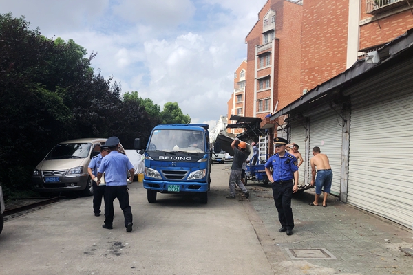 8月5日,区住建、综合行政执法、市场监督管理、公安等相关部门对高田王社区四季阳光小区临街车库违规使用现象进行了联合集中整治。