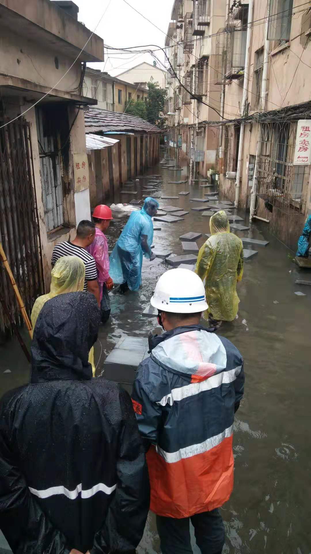 信谊社区历来是防汛防台重点区域,其中中塘路87弄,望童路9弄、41弄、55弄又是积水重灾区,此次台风来势汹汹,虽说居民群众已经提前备好了各类食品,老弱病残的该投亲靠友的都已经走了,可是剩下的人毕竟还要生活的。看着家门口的快要齐腰的一池黄水,真叫是近在咫尺,远在天涯,有家难回。