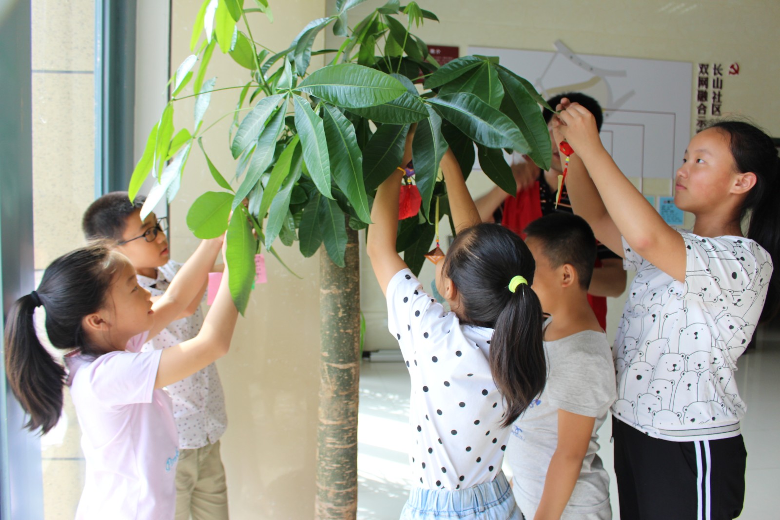 也许是一家之主的他为了家庭正在外地奔波,你希望他能平平安安;也许是你的孩子可爱顽皮,你希望他能健健康康;也许是爸妈年纪都大了,你希望他们能晚年幸福……近日,长山社区假期学校的“小候鸟”们在彩纸上写上祝福语,同自制的香囊一起挂上了“幸福树”,为家人、朋友祈福。