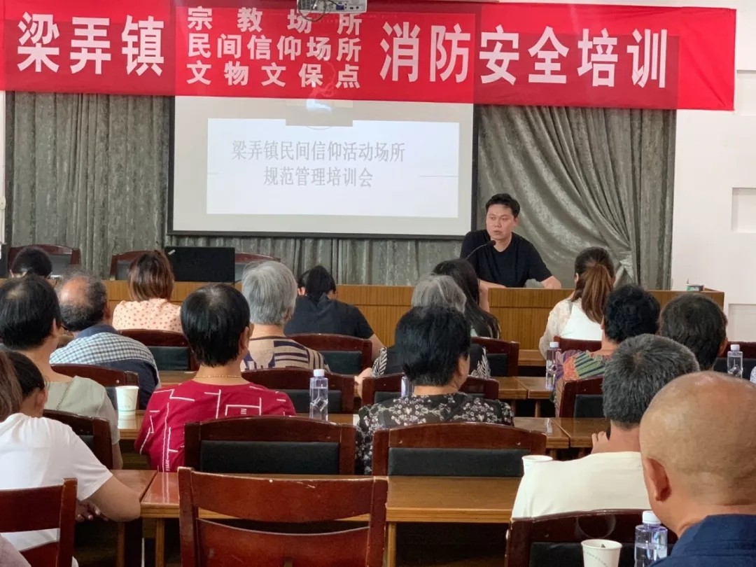 针对烈日炎炎,连续的高温,为进一步加强宗教、民间信仰活动场所消防安全及事务规范化管理工作,做到防患于未然。8月15日上午,梁弄镇成校联合梁弄镇政府邀请了梁弄消防中队队员在文化广场举行宗教、民间信仰活动场所负责人消防安全知识培训会暨消防演练培训活动。各村民宗专管员以及宗教、民间信仰场所负责人共60余人参加。