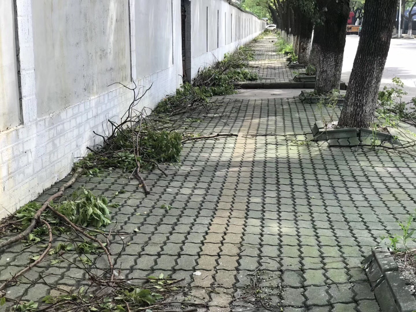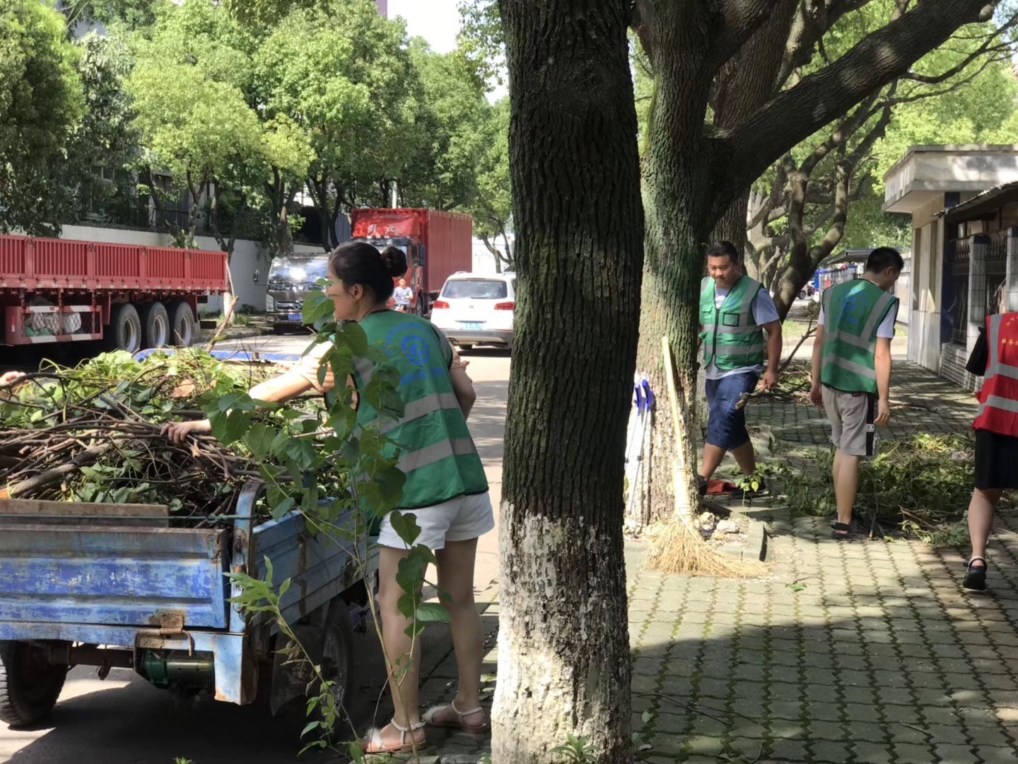 台风“利奇马”暴风雨肆虐后,辖区道路上随处可见的树枝、落叶。8月11日,山下社区联合区统计局开展了清洁佳园活动。