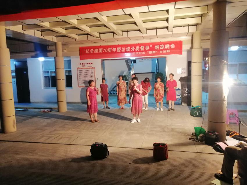 炎炎夏季,为丰富辖区居民们的业余生活,营造和谐社区文化氛围, 8月15日傍晚,庄市社区在办公大楼举办一场题为“纪念建国70周年暨垃圾分类督导”夏纳凉晚会,为辖区广大居民们的夏季文化生活增添了新的色彩。