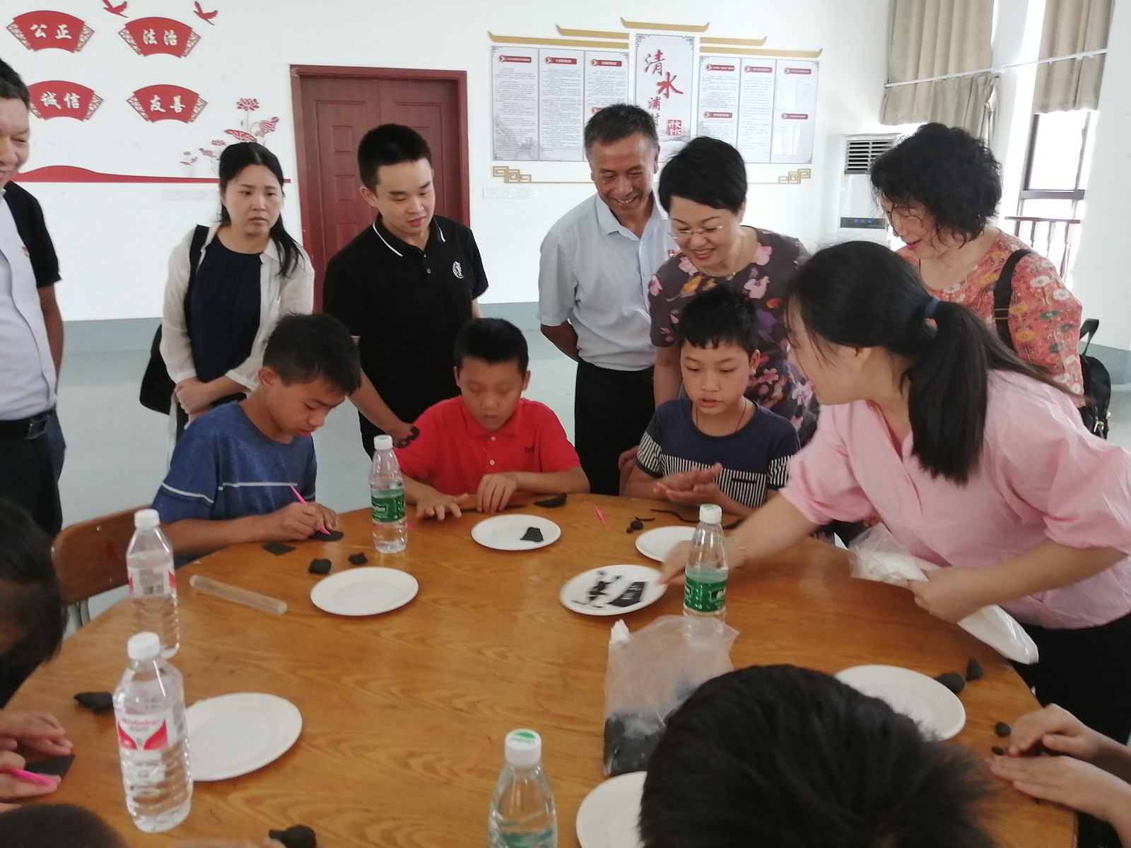 在活动中,小朋友们在陆娟娟老师的指导下,学习制作以垃圾分类为题材的泥塑彩盘。一双双小手通过揉、搓、刻等,在小盘上塑造出四色垃圾桶以及四色小蚁哥形象。活动现场,老师耐心细致的指导,孩子们也忙得不亦乐乎,活动还吸引了来本村指导工作的区委、街道相关领导的驻足观摩,他们饶有风趣地观看了孩子们制作过程,并对村里组织非遗课堂进农村文化礼堂给予很高的评价。