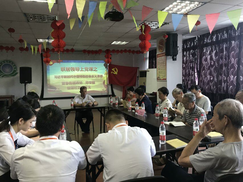 8月15日上午,信谊社区党员活动室里座无虚席,讲台上,望春街道政协主任、信谊社区联社领导郑荣健正在为社区全体党员们上党课。