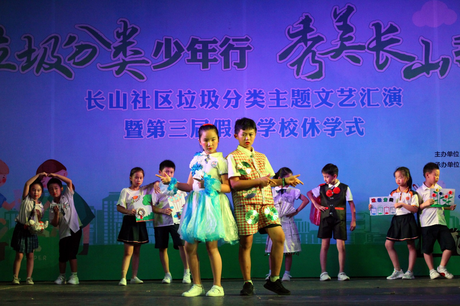 8月16日晚,骄阳的热浪已经褪去,但长山社区却是人声鼎沸、人潮涌动,上至六七十岁的老奶奶,下至刚会跑跳的小娃娃,很快把现场围满了,就如同早年“社戏”的场景。原来这是长山社区“垃圾分类少年行,秀美长山我做起”主题文艺汇演暨第三届暑期假日学校休学式在这里举行。街道关工委常务副主任向坚芳、团工委书记董彦辰、关工委办公室主任徐海珠、社区党支部书记黄丹霞等参加。