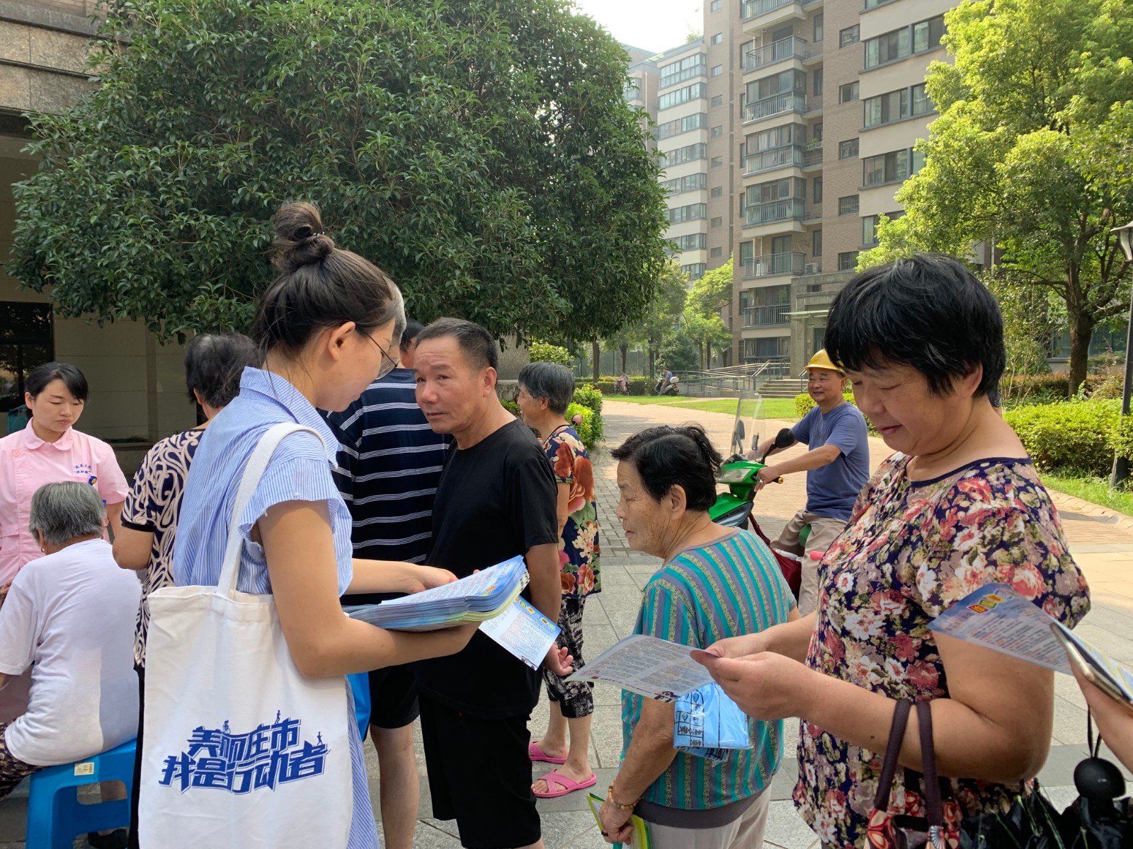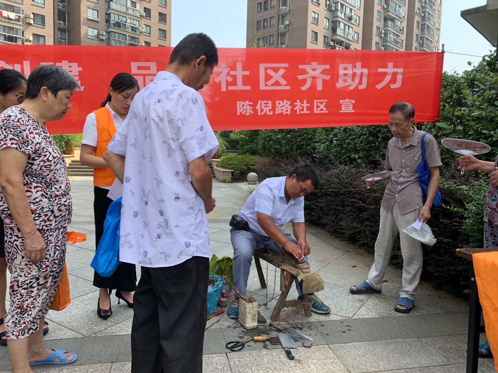 8月21日上午,陈倪路社区在柳岸晨韵小区开展便民服务进小区活动,尽管天气炎热,但活动刚开始就吸引了一批居民早早来到现场。现场提供的项目包括咨询服务、便民维修、政策宣传三大类,“这个按摩按好很舒服啊。”一位刚在肩颈调理服务处按摩好的阿姨连连感叹,“理发师傅剃头发很仔细啊!”一位老师傅在旁点评道,理发志愿者虽然是年轻人,但对老年人的要求十分耐心,得到了居民的好评,而磨刀处居民更是热情高涨,志愿者师傅一到,居民们就忙着找凉快的地方给师傅放工具,虽然人多,但也尽然有序。其他服务项目也是人头涌动,包括内科咨询、耳鼻喉科检查、量血压、针灸咨询、有害垃圾兑换、新版人民币宣传、防诈骗宣传等,居民们表示,便民服务进社区方便了大家,让大家感受到了社区关心,希望活动越多越好。