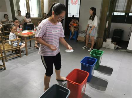 活动现场梁弄非物质文化遗产继承人梅柏桥给小朋友们讲解大糕的由来、梁弄的饮食文化及大糕的简单制作流程,孩子们认真聆听梅老师的讲解,让孩子们深切感受到非物质文化遗产的独特魅力和文化内涵,现场还品尝了梁弄阿桥大糕。垃圾分类宣讲员杨美英为小朋友们分发了垃圾分类宣传手册和宣传图片,杨老师详细讲解了垃圾分类的意义及方法,小朋友们现场模拟投放垃圾,提升了小朋友们的垃圾分类意识,又扩大了垃圾分类宣传的覆盖面。