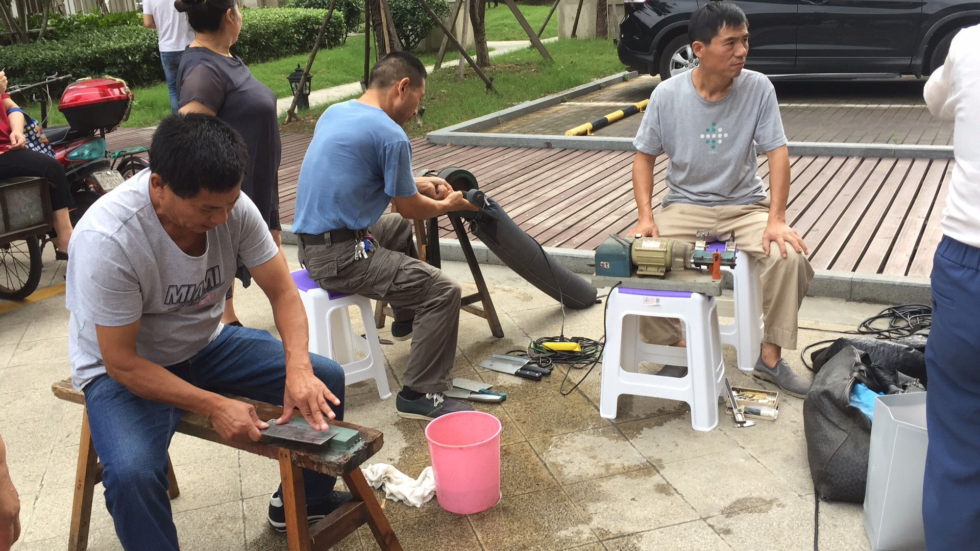 伴随着清晨的鸟叫声,我们的便民活动开始了,只见义剪摊位前排起了小长队,大家都耐心的等待着理发师给自己修剪头发,理完发的居民们个个都洋溢着开心的笑容。家里有生锈的剪刀的居民也纷纷把自家的剪刀拿来给师傅修理,在师傅的巧手下,一把把剪刀犹如获得新生。