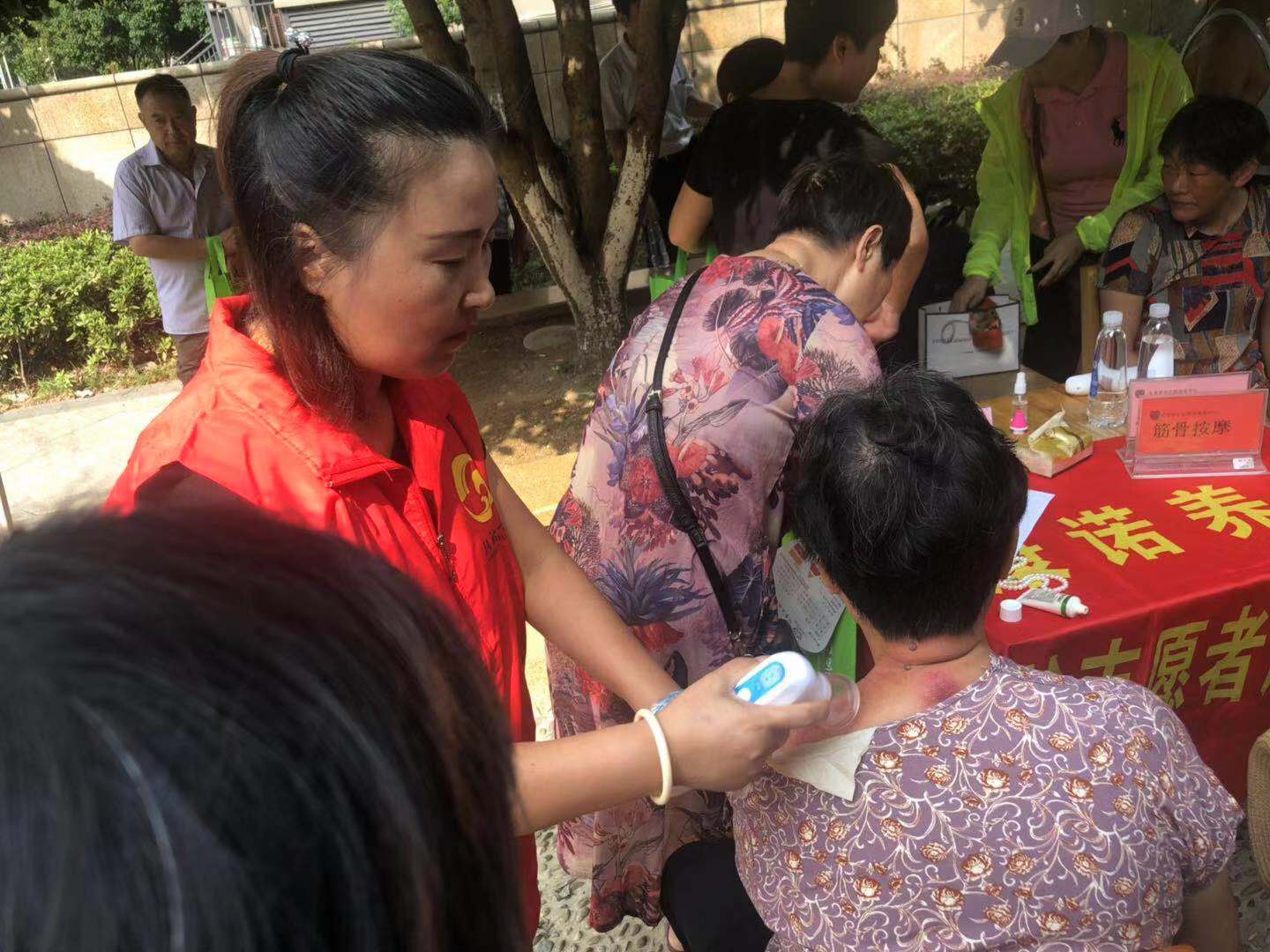 活动现场的筋脉按摩、计生服务、垃圾分类宣传点志愿们也和居民互动得气氛洋溢,人头攒动。