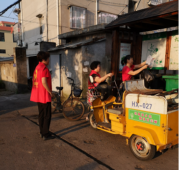 志愿者们拿着一张张环保宣传手册,来到村口,向附近的家长、居民、学生宣讲环保知识。因发展需要,我国资源消耗逐年上升,人民却普遍节能意识较低,环保概念不强,缺少垃圾分类、资源回收利用等理念。并在倒垃圾处专门有人指导垃圾分类,社区推广“垃圾分类,资源利用”的环保理念。