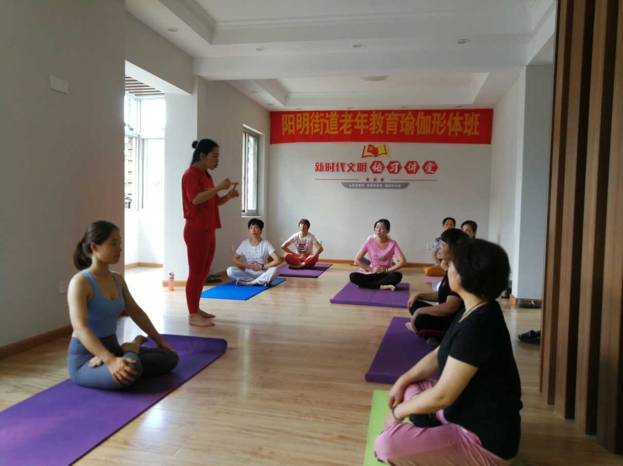 阳明街道老年教育新城市社区教学点瑜伽形体班如期开课。在开学“第一课”上,瑜伽老师先向学员们介绍了练习瑜伽的各种好处,随后开始了第一次减压瑜伽的授课。学员们在老师的精心教授下,做出了各式的瑜伽动作。