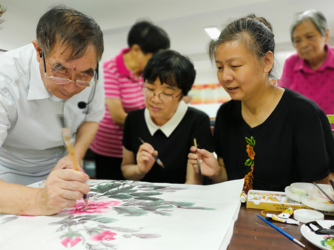 课上,徐为农老师结合中老年特点,制定了专门的教学计划,向学员们介绍国画的相关知识,接下来的课程中他将分别教授花鸟画、山水画,为书画爱好者们提供了一个良好的学习平台,更好地满足这些老人年的精神文化生活,在提高自身水平的同时还可以将绘画方面的知识进行普及,使他们老有所为、老有所乐。