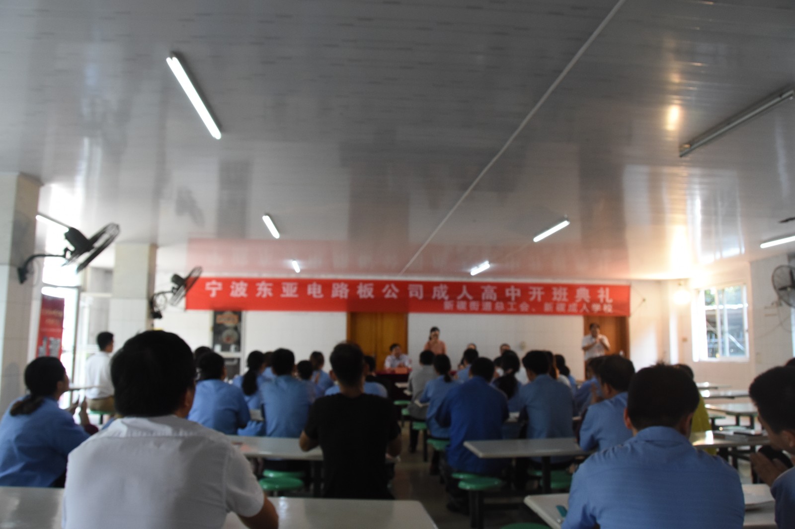 学习是企业成长、发展、创新的动力,随着科学技术的飞速发展,企业对职工的文化素质要求也越来越高,为了提高企业职工队伍的整体素质,不断提升成人学校教育对当地经济的服务能力和水平。近日,新碶成校教师走进宁波东亚电路板有限公司,为48名企业员工提供为期一年的“学历+技能”双提升的成人高中“双证制”教育服务工作,在这一年学习期间,新碶成校将为这些学员无偿提供教材、师资、各门课程的学习软件等学习工具,让企业员工自由选择适合自己的学习方式,还要对他们开展与企业需求一致的技能培训,让每一个学员都能够学到有用的知识,掌握企业必需的技能,顺利毕业。
