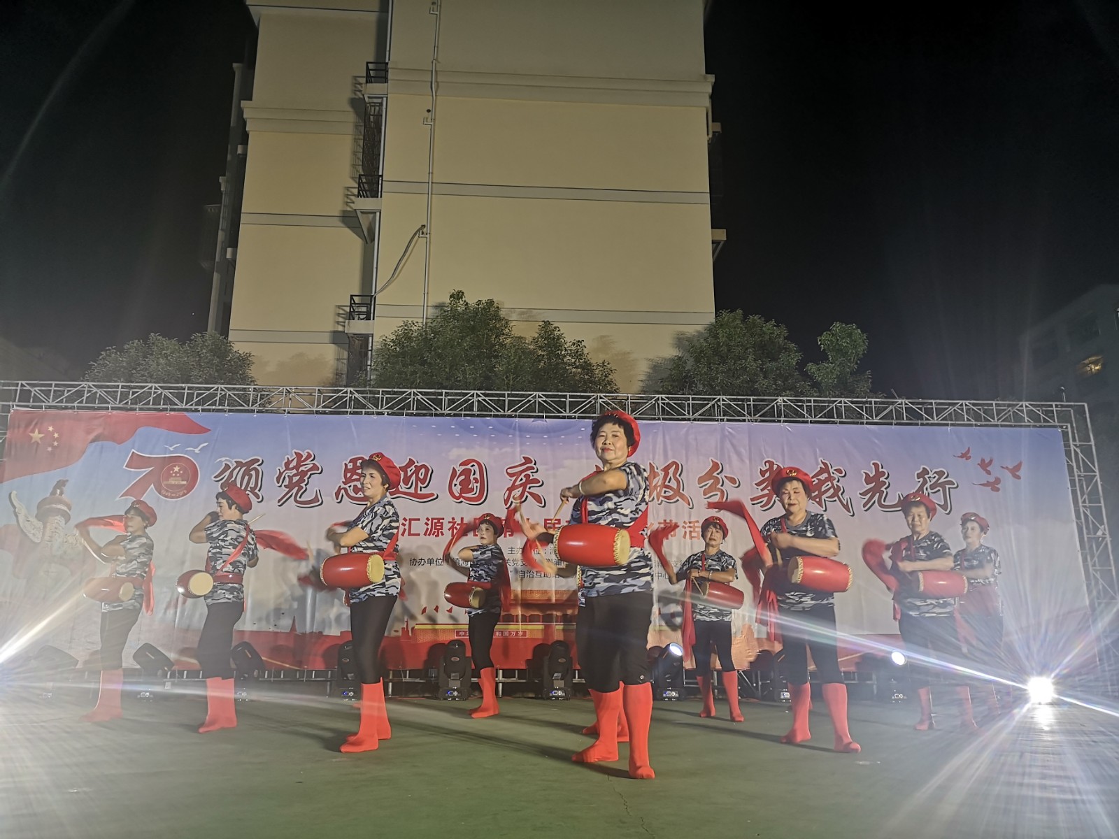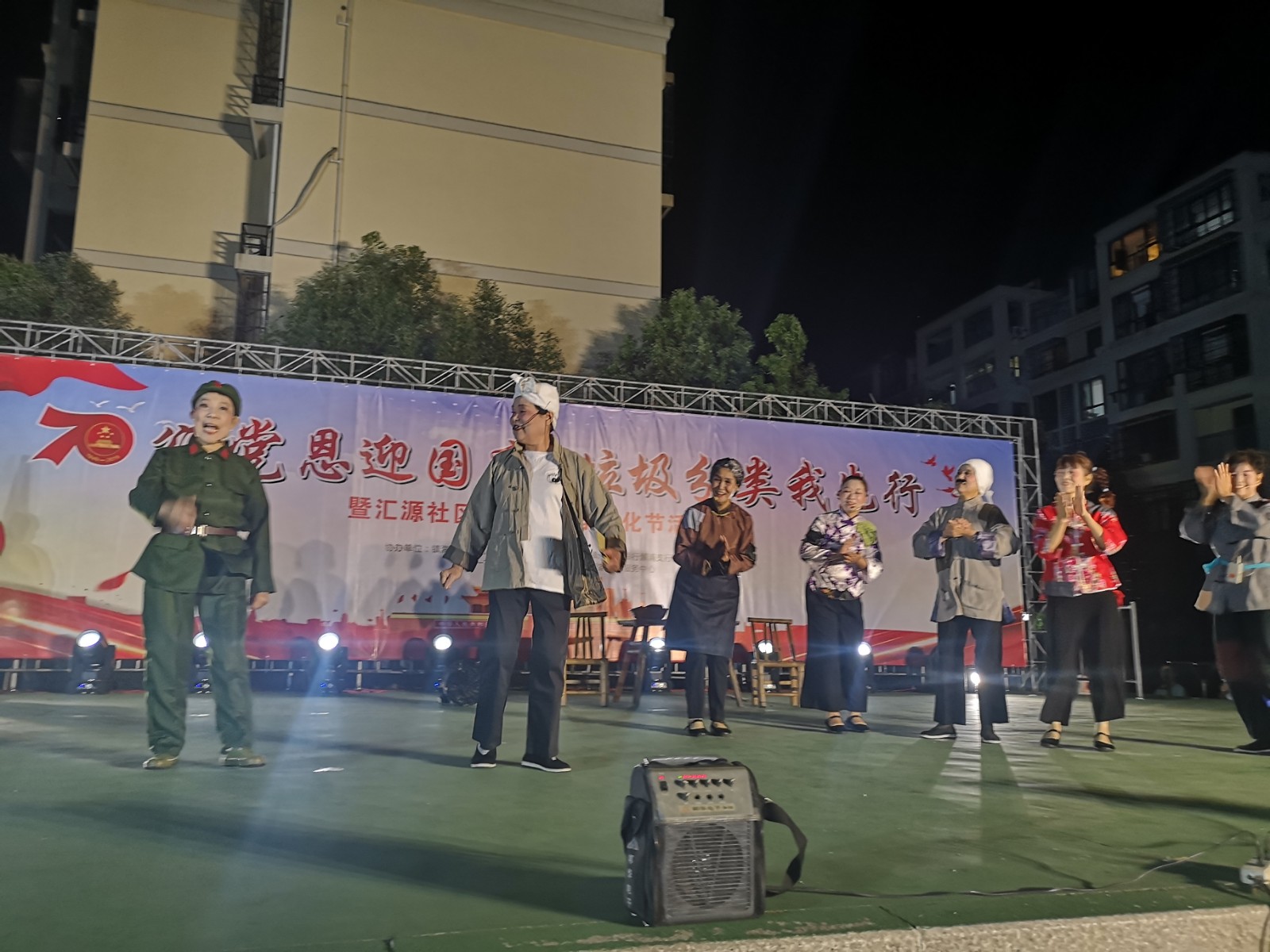 2019年9月20日晚17点半起,镇海区澥浦镇汇源社区北广场里搭起了一张张桌子,不一会儿,这里就出现了一群“能人”现场写书法和编织娃娃,恭贺祖国母亲70周岁生日快乐!通过这一小时的人气积累,18点30分,咱们的节目正式开始啦!