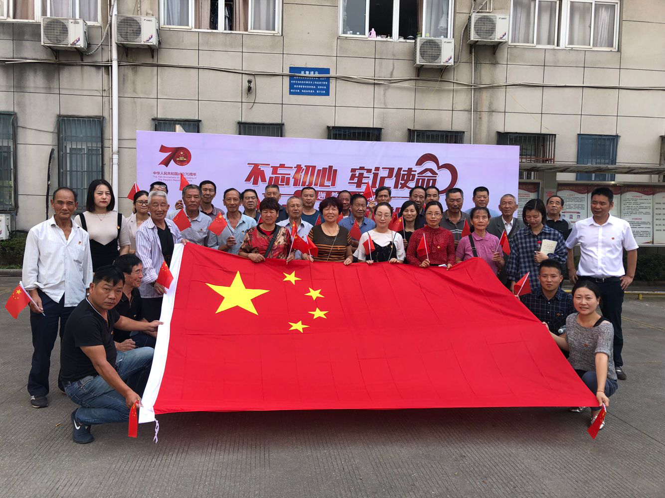 在悦耳的音乐结束后,活动正式开始。大家来到旗杆下,自觉站成四排,由与祖国同龄的党员组织升旗仪式。当激情澎湃的音乐奏响,党员们以庄重的神情向国旗行注目礼,认真凝视着缓缓升起的五星红旗,蠕动着嘴唇唱着“起来,不愿做奴隶的人们……”尤其几个老党员热泪盈眶,回想往昔峥嵘岁月,不禁感慨万分。仪式后,大家与国旗合影,表达了对祖国的热爱与赤诚之心。