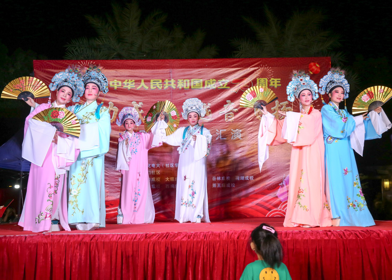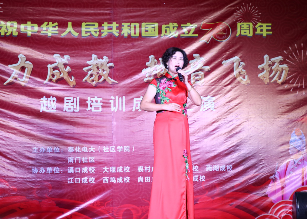 昨晚,由奉化电大(社区学院)和南门社区主办、区相关成校协办的庆中华人民共和国成立70周年暨“活力成教 越音飞扬”越剧培训成果汇演在锦屏街道南门广场举行。
