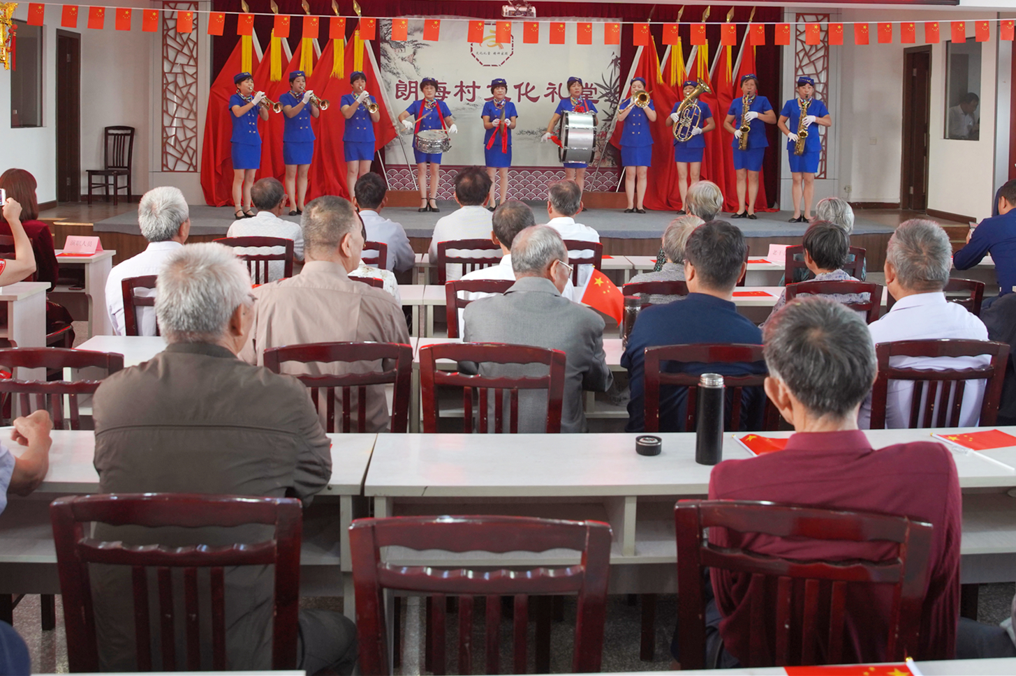 随后,大家来到朗海村文化礼堂,汇报演出活动在铜管乐班带来的演奏《没有共产党就没有新中国》中拉开了序幕。伴随着欢快的旋律,十多个文艺节目依次闪亮登场。所有节目都是学员们自编自演,节目涵盖歌唱、舞蹈、演奏、越剧、柔力球表演等多种艺术形式,为台下近100名观众带来了一场温馨的视听盛宴。