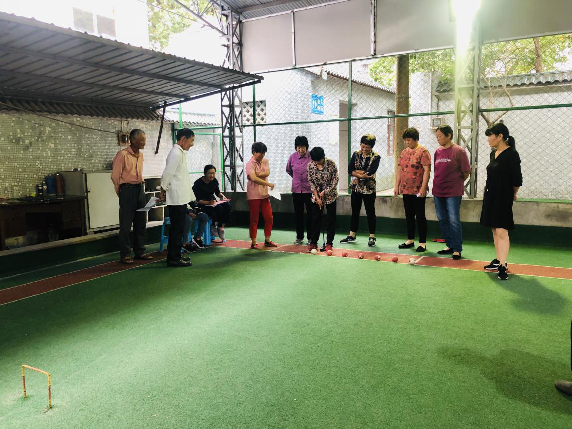 下午,南新庵村第二届老年趣味运动会吸引了12支代表队,近150位老年村民参加此次运动会。参加比赛的运动员年龄最大的83岁,最小的也有60岁。运动会现场可谓是热闹非凡,老人积极参与了门球、小篮球投篮和沙包投准等五个集趣味与健康一体的游戏,气氛融洽而热烈,赛场上不时传来老人们的欢笑声、喝彩声。