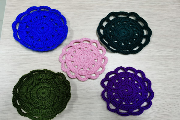课堂上,大家其乐融融地坐在一起,冷老师进行简单介绍钩织杯垫的针法后,有一定钩针基础的姐妹开始动起手来,色彩斑斓的绒线在她们的手中不停地翻动,经过转、结、编等一系列巧手编织,慢慢地一个个精美的“小杯垫”手工编织作品就呈现在大家的眼前。手生的姐妹纷纷向冷老师讨教“长针”、“短针”和“编针”的做法,大家相互之间不时切磋交流着编织技巧。
