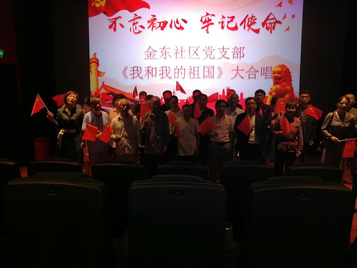 主题党日要载体创新,内容充实。10月14日,金东社区党支部依托红星国际影城平台开展了“不忘初心 牢记使命”主题观影活动,共同观看《我和我的祖国》。