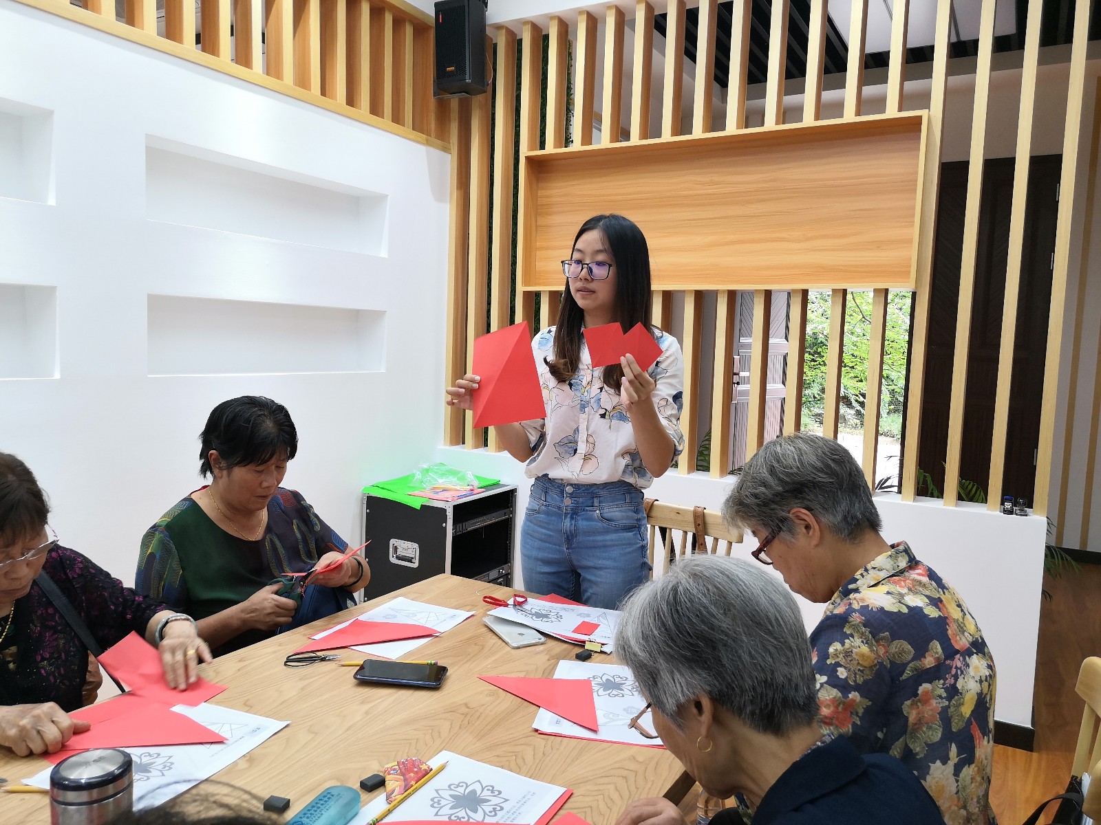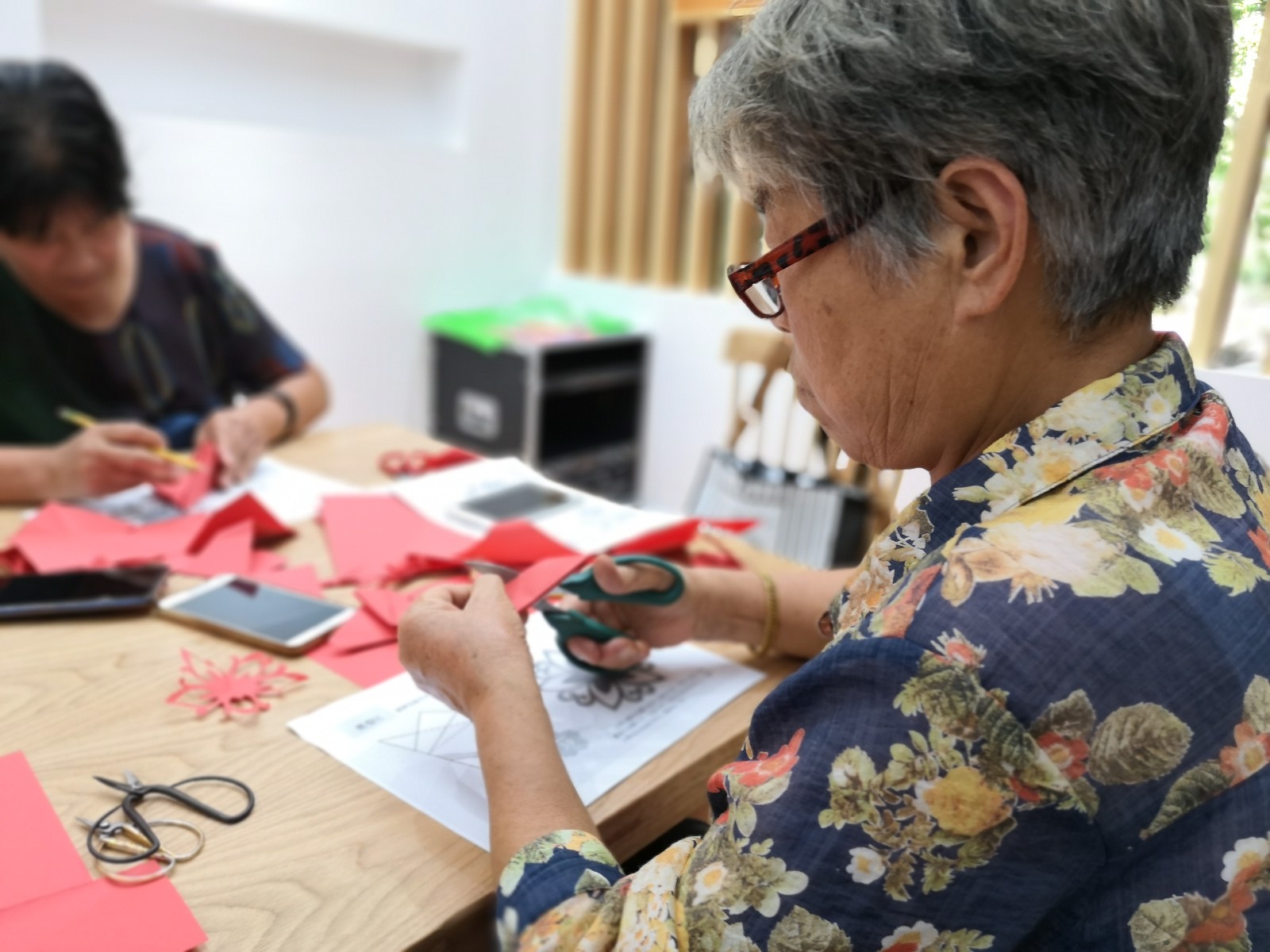 活动现场气氛热烈,参加活动的人员有社区工作人员、居民群众20人。老师认真细心地教大家如何折纸、剪纸、翻纸等,还没等老师讲完,大家已经跃跃欲试,边讨论边剪,大家充分发挥想象力,剪纸成品各式各样,不时传出欢快的笑声。活动的开展使居民们充分感受到剪纸艺术的独特魅力,体验艺术创造带来的乐趣和成就感。