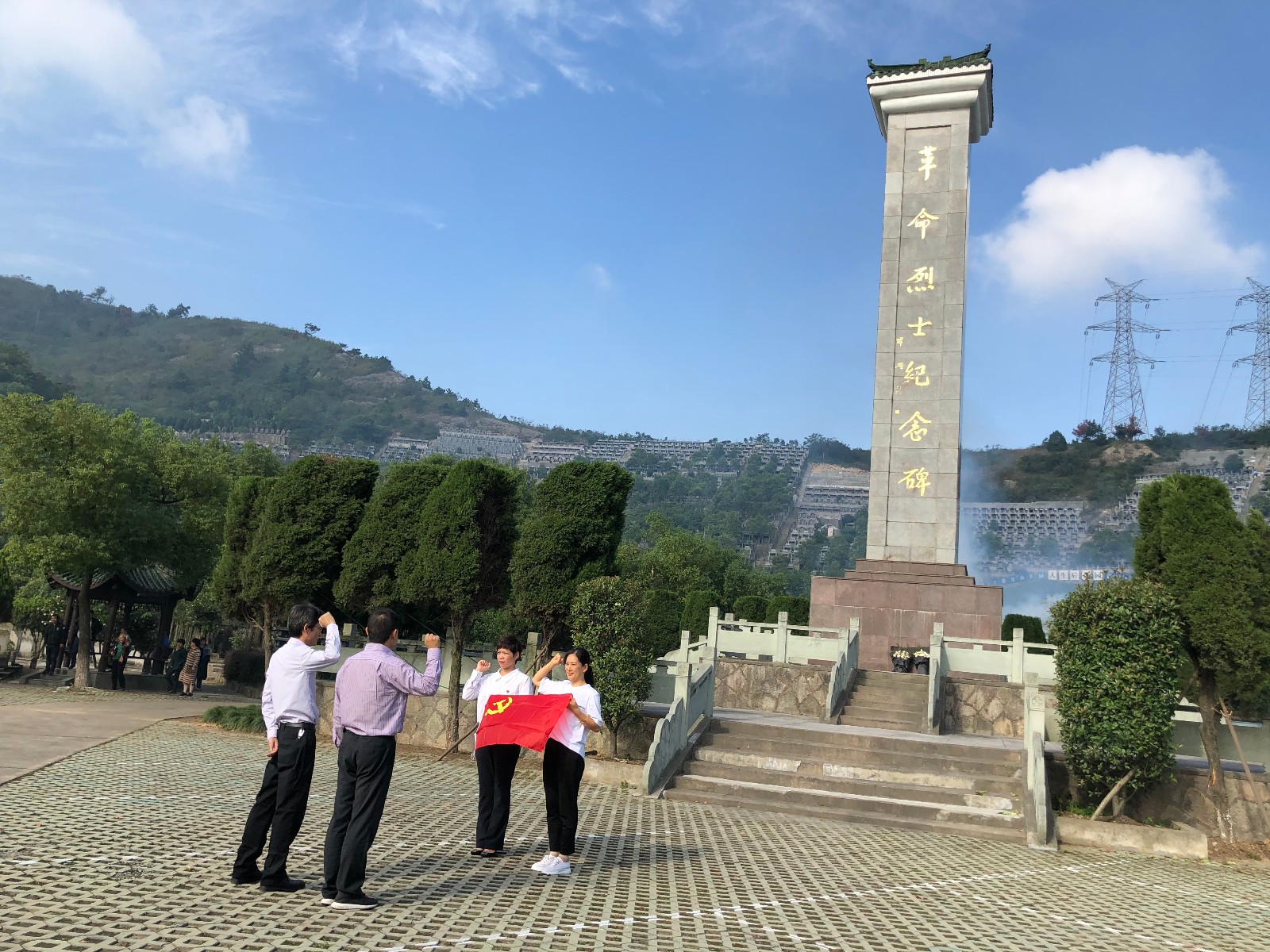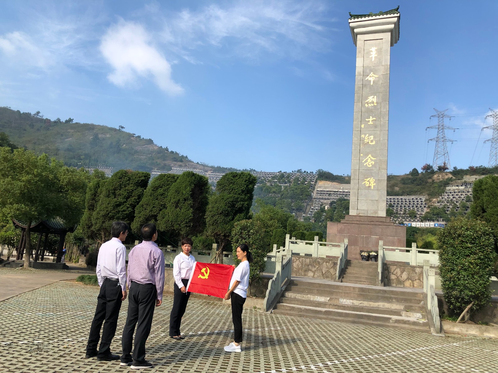 青山巍巍,松柏长青,在庄严肃穆的革命烈士纪念碑前,全体党员向纪念碑行三鞠躬礼,告慰烈士忠魂,寄托对烈士的无限哀思。随后,党支部书记马燕群上党课,全体党员在鲜艳的党旗面前,重温了入党誓词。最后,全体党员绕纪念碑一圈,瞻仰纪念碑。