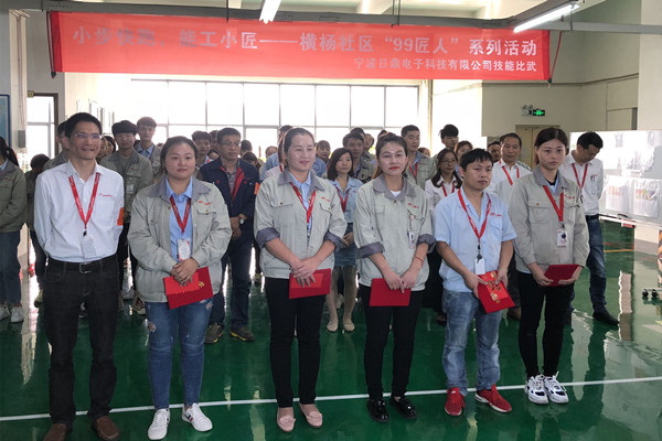 10月19日上午,“小步快跑 能工小匠”99匠人系列活动之技能比武大赛第五站在北仑区大碶社区教育学院横杨社区分院辖区内的宁波日鼎电子科技有限公司顺利举办。横杨社区分院陆琪燕,日鼎公司代表胡敏海出席比武大赛。