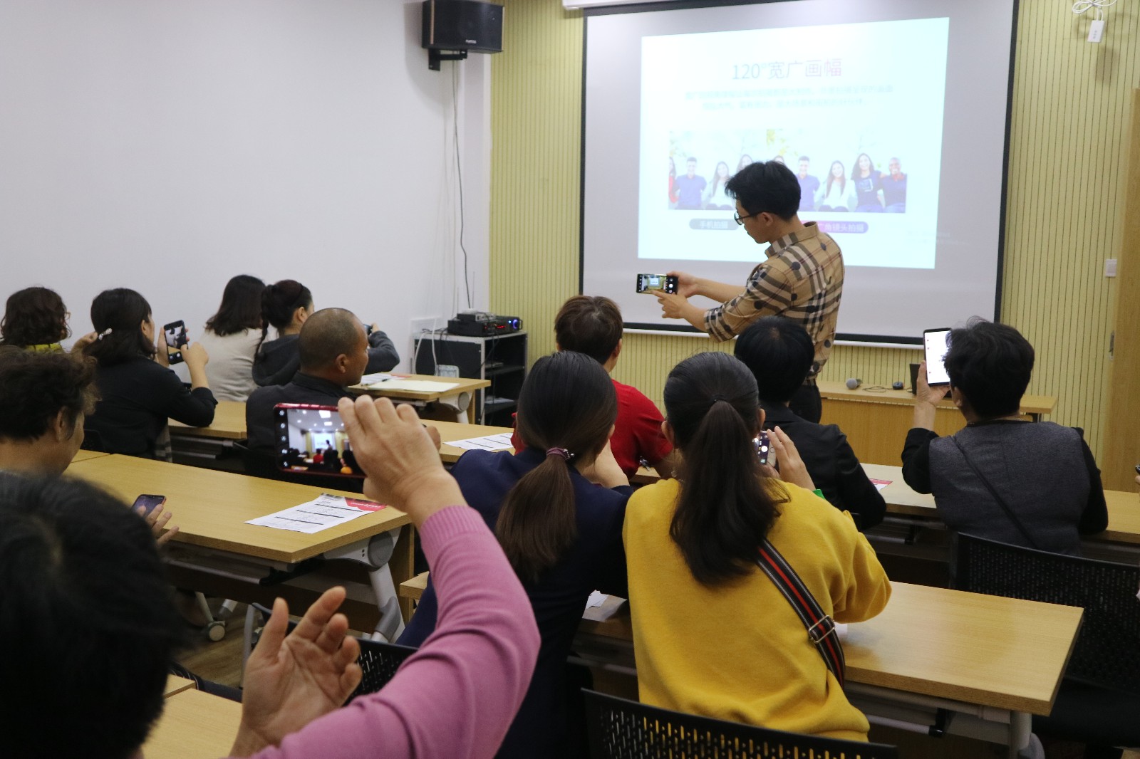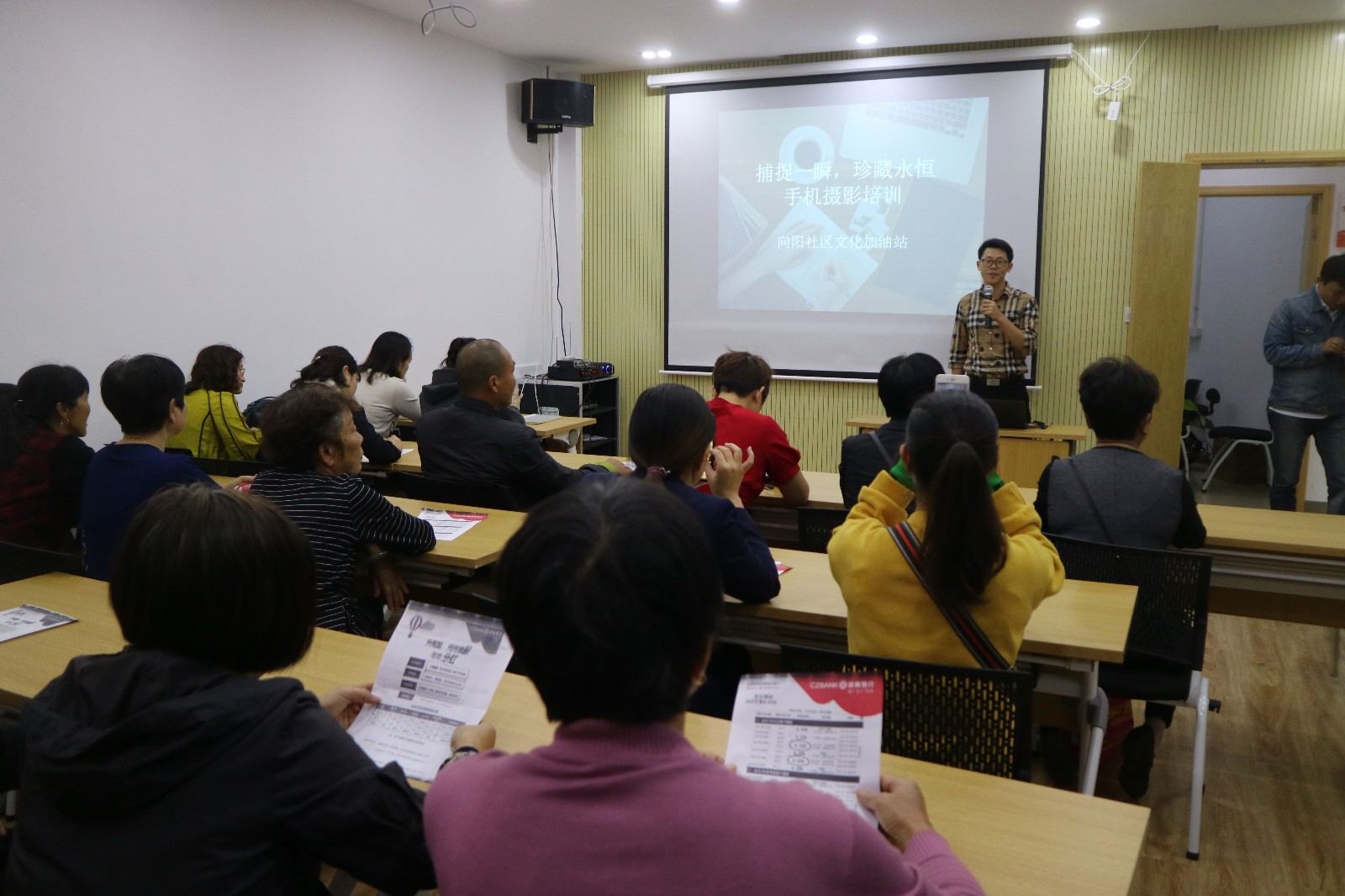 为了提高社区居民的摄影水平,调动他们用自己的手机和相机记录和谐社区的积极性,10月17日下午,向阳社区开展摄影培训讲座。此次讲座邀请到了文化站李泽浩老师授课,来自社区的20多位摄影爱好者参加了学习,。