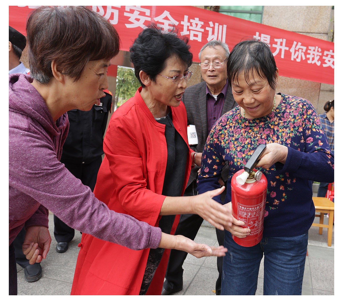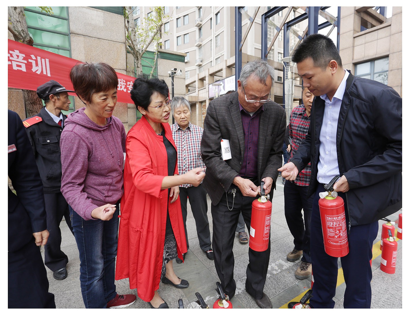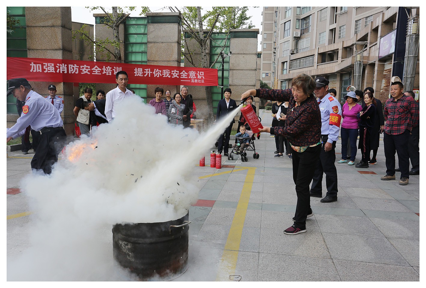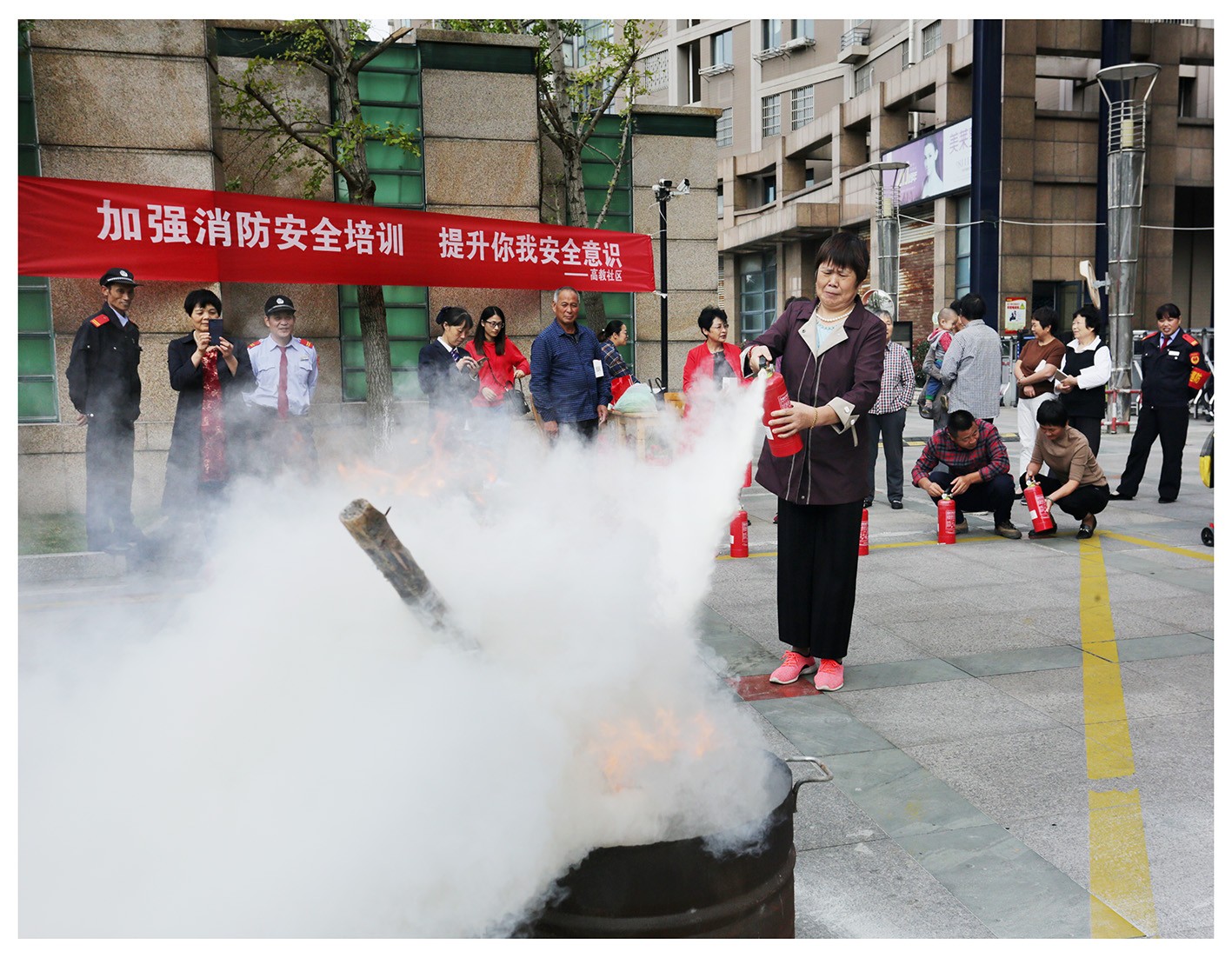 “你看,王老师 ,是不是这样?”李阿姨手拿着消防栓正在朝着火源处灭火。与以往走进工业区与企业进行消防演习及宣讲不同的是,今年高教社区综治办主任王益伟带领着灭火栓和水木清华小区物业工作人员一起,为小区居民带去一场消防实操演练,让居民朋友自己参与灭火其中。这样的演练对于参加的居民来说是第一次,能拿着灭火器将“火”扑灭的实际演练很是难得,防患于未然,安全第一,时时警钟长鸣。